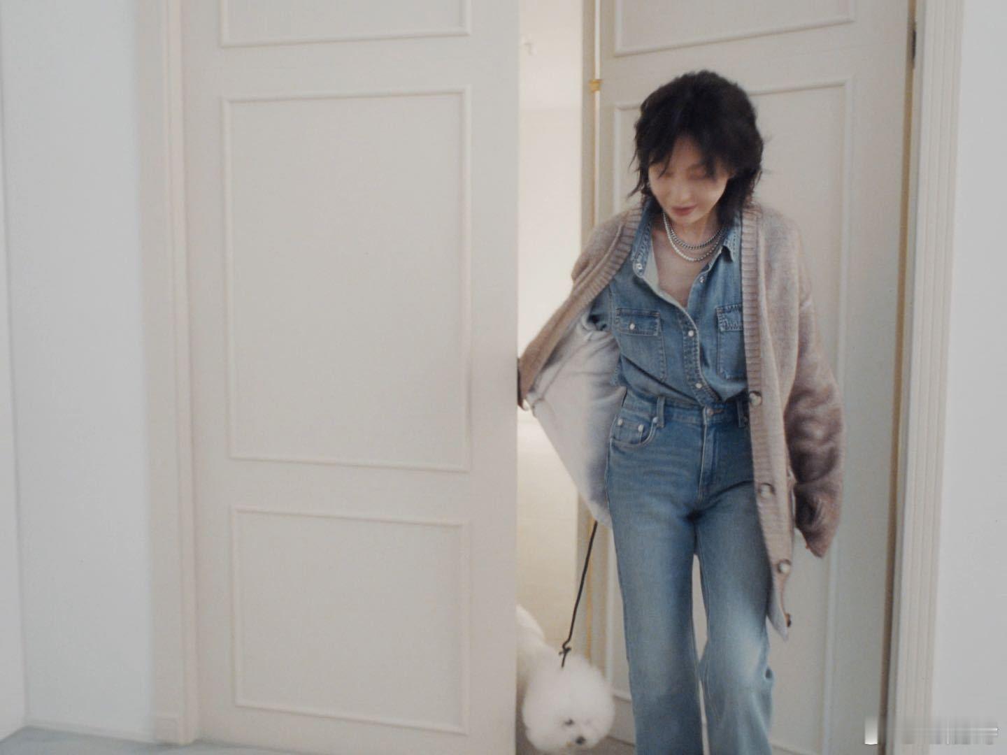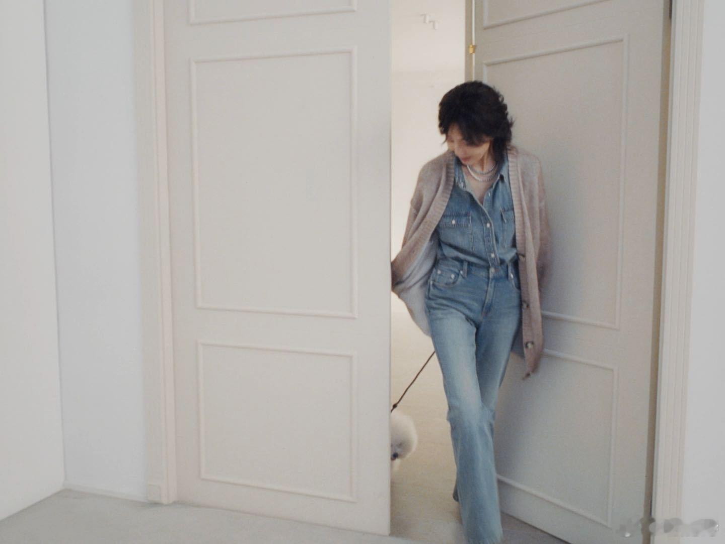 张曼玉牵狗上班 张曼玉牵着狗狗拍的MO&Co.代言短片好松弛,没有刻意凹造型,只