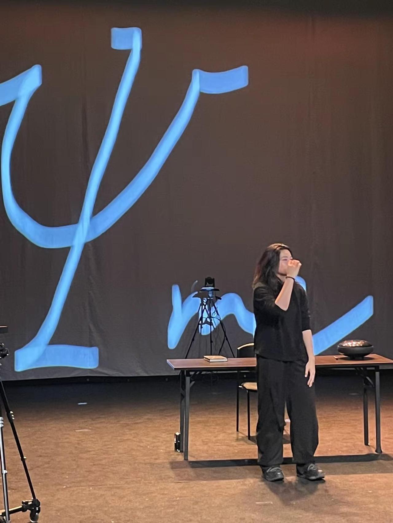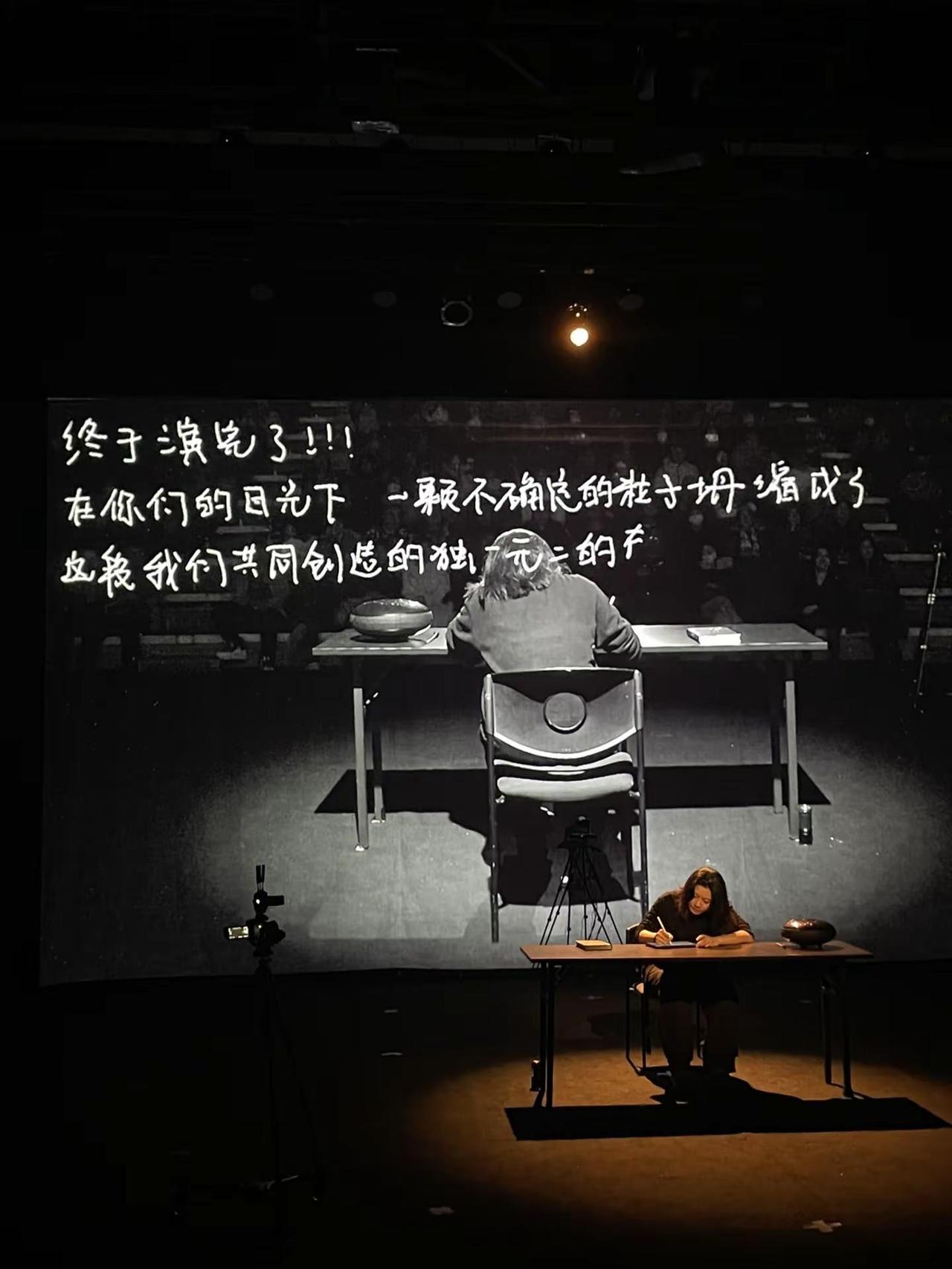 看《一场未命名的游戏》 这是一把高端局,完全没想到,这么好看!演员及剧场布局:伍蓝盈一个人的独角戏,简单的布局,几个摄像头、大屏幕、座椅、镜子、衣架……这戏太超前,脑洞确实有点大。对重点剧情理解:印象最深的,是女主角头戴摄像头跑出剧场,留观众在现场大屏幕观看“直播”,路人被搭讪很冷漠,现场观众都在笑!大屏幕上,女主的大头照,用AI幻化出无数背景时,从忧郁的脸幻化成明媚的脸而背景是海水是森林是湛蓝的天空,表达的情绪,让人瞬间感动。大海中,只剩下头在海面上……冰冷的海水与狂暴的海风,这滋味,真是瞬间懂了,那是一种不想活了又不得不面对现实的挣扎。而一些自言自语的行为,与母亲的对话,而延续母亲“抑郁”的情志,剩女、大龄无业,种种都是那么贴合现实。还有一直是个好人、好学生、好市民、好孩子、好职员、好顾客……社会化标签,是门必修课。结尾:演员与现场观众互动多次,很接地气。70分钟演出后,还有20分钟沟通会。演员和导演解答了现场观众的提问,很有深度。
