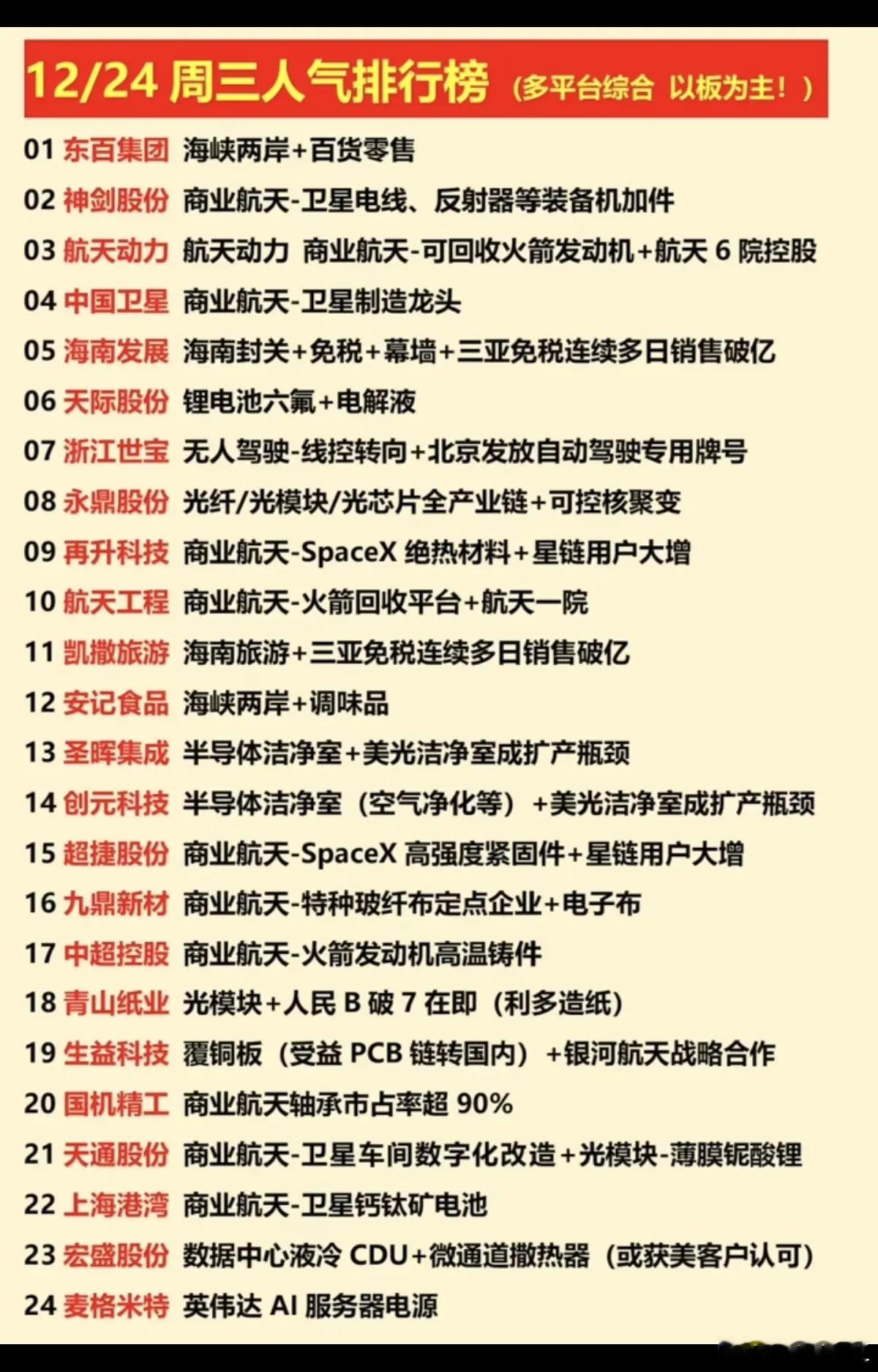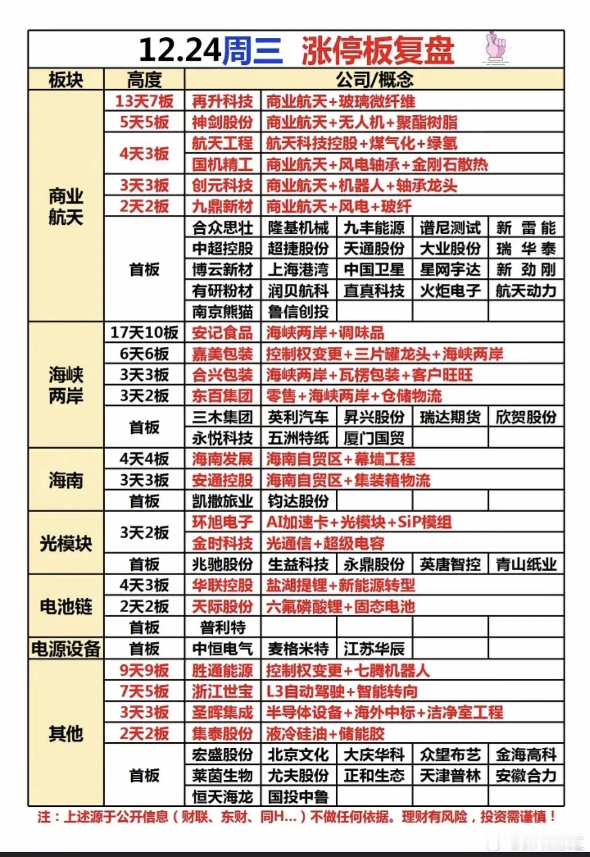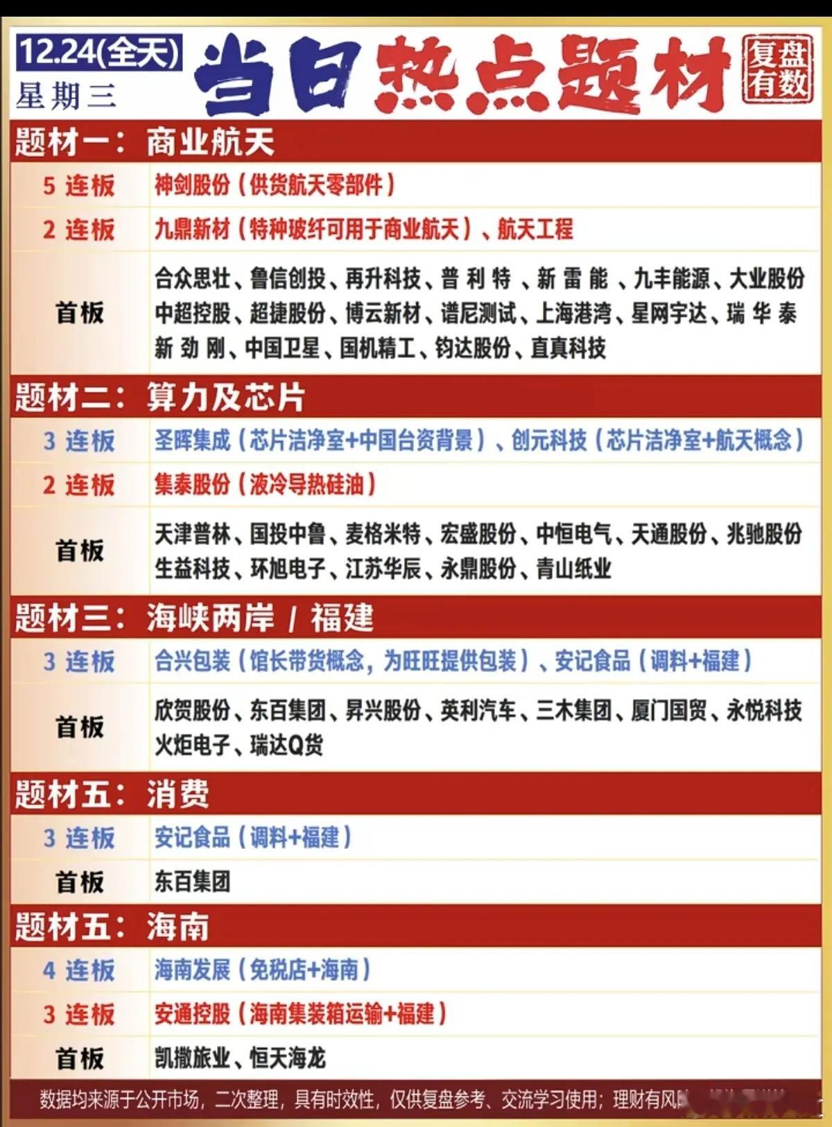 12月24日复盘,主力流入流出数据+人气排行榜+连板高度+热点前瞻+尾盘抢筹1、主力流入流出数据梳理2、涨停板涨停逻辑、连板高度梳理3、热门人气股梳理4、暗盘流入数据梳理5、顶级游资操作梳理6、市场热点信息好:海南自贸区封关+人民币升值+模拟芯片