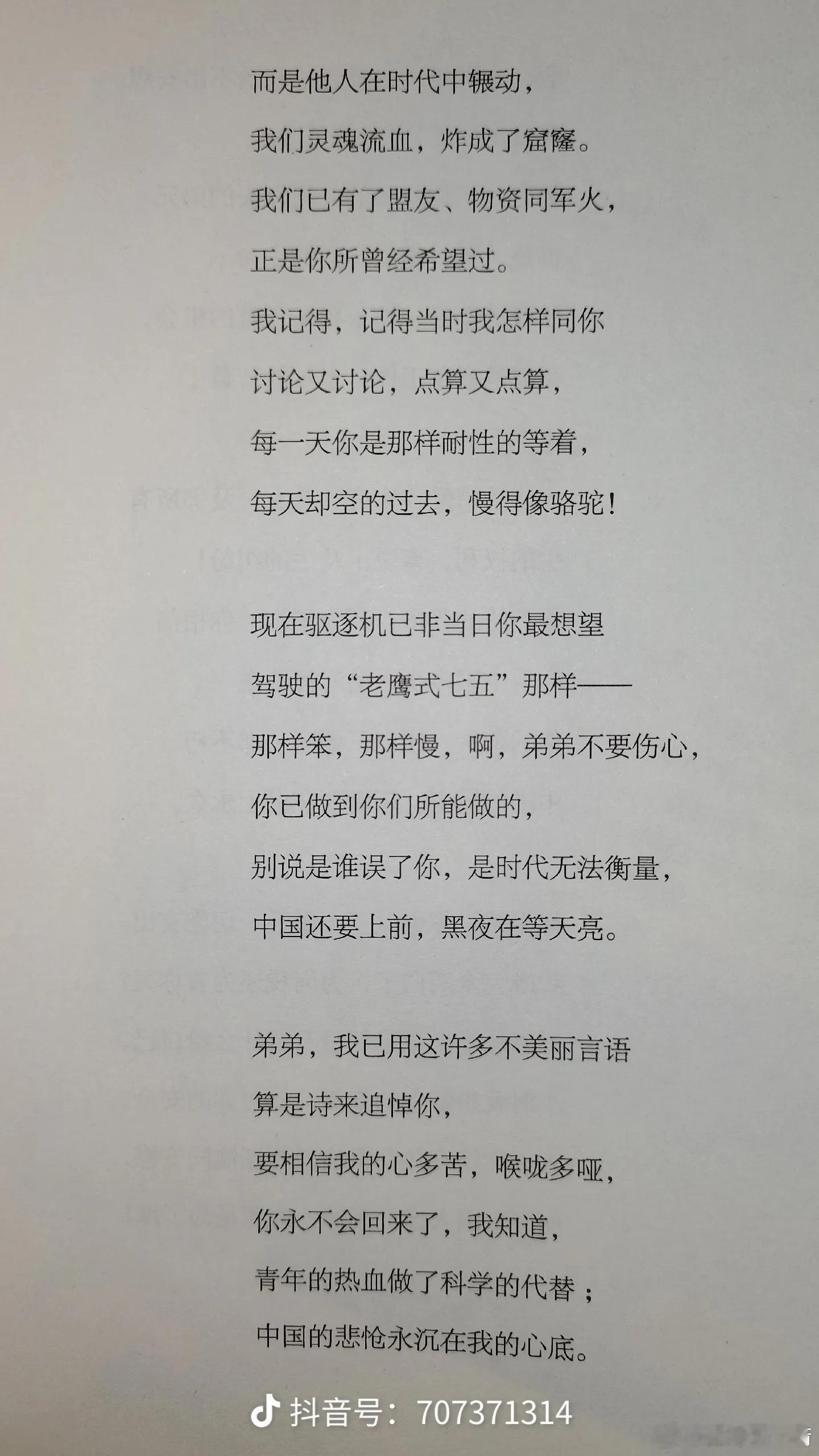 无意间读到林微因的《哭三弟恒》,感人至深。“弟弟,我没有适合时代的语言来哀悼你的死;它是时代向你的要求你已做到你们所能做的别说是谁误了你,是时代无法衡量,中国还要上前,黑夜在等天亮。”1941年3月,日军空袭成都,林徽因的三弟林恒奉命升空作战,不幸头部中弹,坠机而亡,年仅23岁。 林徽因全家真的是满门忠烈,致敬。