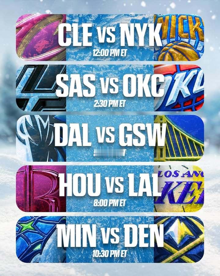 官方公布了今年的圣诞大战球衣,圣诞大战一共有5场,分别是vs尼克斯、雷霆vs马刺