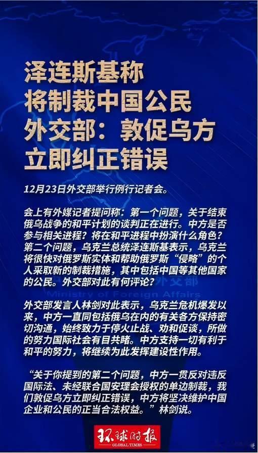 泽连斯基:谁敢挺俄我就制裁谁,俄罗斯人我要管,中国人我更要管泽连斯基好大的口气:谁敢支持俄罗斯,我就制裁谁。俄罗斯人我要管,中国人我更要管。俄乌的战火烧到现在都快奔着第4个年头去了,别看这剧情又长又臭,但小泽作为主演之一,他所贡献的演技依然是影帝级的。据乌通社报道,当地时间12月22日,心血来潮的小泽又针对俄乌局势发布了一条政令。按照他的说法,乌克兰将在今年年底前通过一系列新的制裁决议,对俄罗斯实体以及支持俄罗斯的个人实施更多制裁。小泽这次的制裁新令打击面空前扩大,除了俄罗斯的军工机构和俄罗斯人之外,任何被乌方认定为“涉嫌协助侵略”的第三国公民,都在制裁范围之内。而在这一连串的威胁中,小泽还特意点名了我们的名字:“我们正在准备在今年年底前,对俄罗斯实体和支持俄方行为的个人或实体出台更多制裁决定。其中,至少会有一揽子制裁措施,针对那些与俄罗斯军工联合体合作的人员。除了俄罗斯公民之外,还有来自其他国家的公民,尤其是中国公民。”也不知道是为什么,我听小泽说这话时的口气,总能想起《龙门飞甲》里的西厂督公雨化田:“你问我乌克兰算什么东西?现在我就来告诉你,你听好了:你们西方不敢罚的人我罚,你们西方不敢管的事我管。一句话,从俄罗斯人到中国人,你们西方管得了的我乌克兰要管,你们西方管不了的乌克兰更要管。政治正确,位面之子。这,就是乌克兰。够不够清楚?”当然,雨化田敢说这话是因为他真有这个底气,不光权势滔天,而且武功高强。至于小泽嘛……这我就不好说了,大概是无知者无畏吧。哦,对了,顺便一提,小泽这道威胁要对中俄公民发起制裁的新政令,那圣旨还是在俄罗斯润人科技寡头帕维尔·杜罗夫(Pavel Valeryevich Durov)搞出来的社媒平台“电报”上下的这道政令的本身就够抽象的了,完了小泽还把皇榜贴在了“电报”上。这就更让这桩新闻显得魔幻现实主义了。如果这事只是小泽一个人的自娱自乐也就罢了,可乌克兰人偏不。他们不光要在“电报”上昭告天下,而且还要把御状告到我们外交部的朝堂上来了。在12月23日举行的外交部例行记者会上,乌通社记者就小泽的新政令向林剑提出了这样的问题:“目前,围绕结束俄乌战争的和平方案,相关谈判正在推进中。中国在这一和平进程中扮演什么角色?第二个问题,乌克兰总统泽连斯基表示,乌克兰即将通过一项新的制裁方案,针对那些协助俄罗斯实施‘侵略’行为的俄罗斯实体和个人,该制裁还将包括中国公民。外交部对此有何评论?”我都不敢想林剑在听到这些问题时,心里是什么个活动状态。小泽左手拿着和平方案,希望中国发挥建设性作用,想利用中国的影响力把各方拉回谈判桌前。右手又攥着制裁清单,威胁要对中国的企业和公民下手,理由是他们和俄罗斯正常的经贸往来。说好听,这叫“既要又要”。说难听点,这就是典型的“外交精神分裂”。连同小泽在内,乌方似乎至今都没有搞懂一个基本事实:中国既不是这场危机的制造者,也不是冲突的当事方。中俄两国的正常贸易光明正大,坦坦荡荡,不针对第三方,也不受第三方干扰。乌方试图用美西方那一套非黑即白的二元对立逻辑来强行捆绑中国。在他们的认知里,似乎只要不站队乌克兰,就是在支持俄罗斯。这种逻辑在西方舆论场或许能博得几声廉价的喝彩,但在严肃的国际政治现实中,只能被视为幼稚。如果连致力于斡旋和平的中国,她的公民都要遭受这种无端制裁威胁,那乌克兰所谓的“和平诚意”,究竟还剩几分呢?当然,我们也不能太高估乌克兰独立制定这种激进策略的能力。从小泽透露的信息来看,乌方这一波针对第三国公民的制裁,并不是乌克兰人自己心血来潮,而是与美西方深度勾连的结果。他在声明中直言不讳地提到,乌克兰正在与欧洲机构紧密合作,敲定欧盟第20轮制裁方案的细节。这一系列动作表明,乌克兰正试图将自己嵌入美西方的制裁体系中,在充当某种反俄先锋的同时,还试图借美西方的淫威来恐吓其他国家。小泽那番口不择言,与其说是乌克兰要管束中国人,倒不如说是某些美西方势力想借乌克兰之手,将对华遏制的战线,延伸到俄乌冲突的舆论场上。他们深知,直接由美欧出面对中国公民进行长臂管辖,势必引发强烈的外交反弹和对等反制。而利用处于战争状态、拥有某种“道德豁免权”的乌克兰来做这个“脏活”,不仅成本更低,舆论阻力也更小。这种“代理人制裁”的模式,本质上是美西方对华“脱钩断链”战略的变种。他们试图通过制造寒蝉效应,切断中国与俄罗斯以及其他非西方国家的正常联系,迫使中国在并在地缘政治上选边站队。即便乖张如小泽,他也不过是这个阴暗战略里的一枚棋子,别看台前上蹿下跳,但背后提线的另有其人。我们中国人做事,一向讲究先礼后兵。我们理解乌克兰身处战火的苦难,也愿意以最大的人道主义精神提供援助并推动停火。但这并不意味着中国可以容忍对外部势力对我国公民权益的侵犯。国际政治不是爽文。小泽兴许是认为,通过扩大制裁名单,乌克兰能够展示其强硬姿态,进而凝聚国内士气,或讨好美西方金主。但他恐怕低估了饮鸩止渴的副作用。将战火延烧到经贸和人文领域,将中立国的普通公民列为打击对象,这不仅无助于战场局势的缓和,反而会让乌克兰在国际社会上越发孤立。