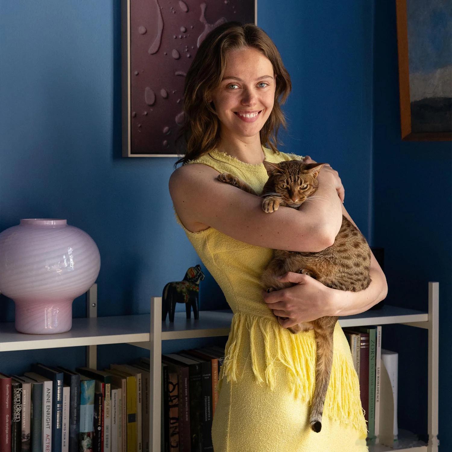 frida gustavsson弗丽达古斯塔夫松晒照送上圣诞祝福,和猫猫围坐在壁炉前温馨烤火【图2为之前达达和猫猫拍摄的居家写真