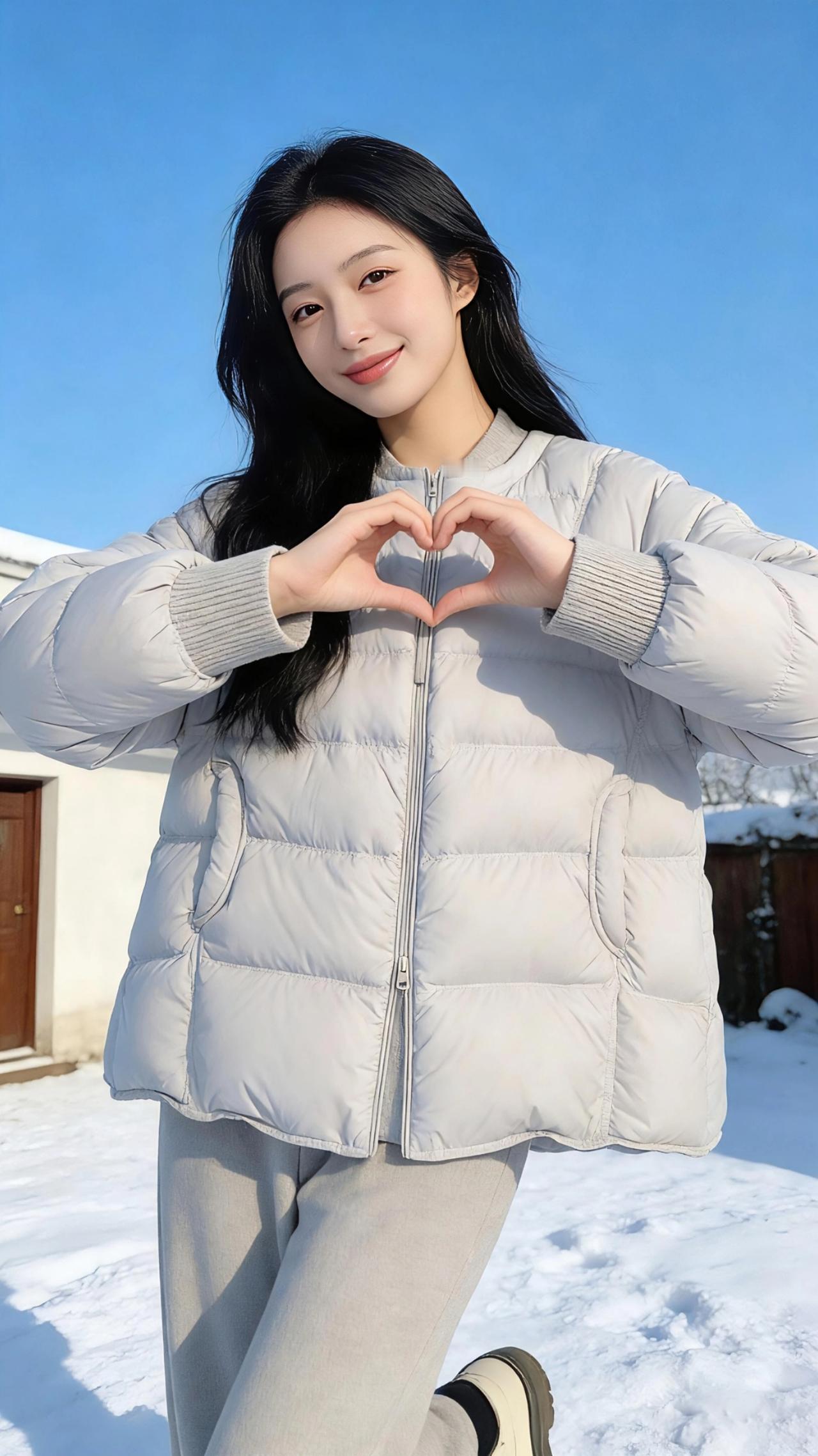 雪日衣影 冬日的风卷着碎雪,在澄澈如洗的蓝天下跳着轻快的舞。年轻的姑娘踩着厚雪,身上的羽绒外套似揉碎的云朵,浅灰款蓬松得像揽住了一团冬日的暖阳,抬手比心时,袖口的针织边蹭过微凉的空气,笑意便从眼角眉梢漾开,融进身后皑皑的雪色里。 她旋身挥手的瞬间,衣摆扫过雪地,浅灰羽绒的褶皱里落了星点雪花,却衬得那抹笑容愈发鲜活。仿佛整个冬天的清冷,都被这灵动的姿态揉成了温柔的絮语。而当黑色羽绒裹住身形时,又像是将冬日的夜揉进了衣料,唯有比出的剪刀手带着俏皮的光,在白雪蓝天的映衬下,撞出一抹利落的甜。 雪落在肩头,落在发梢,却落不进她眼里的光。一件件羽绒外套,是冬日给身体的温柔铠甲,而她站在雪地里的笑,是写给冬天最生动的诗。风掠过,衣料轻响,与雪落的声音交织,成了这雪日里最动听的旋律,让平凡的冬日瞬间有了鲜活的温度。 高级感穿搭 小个子穿搭冬季穿搭 休闲穿搭 棉服