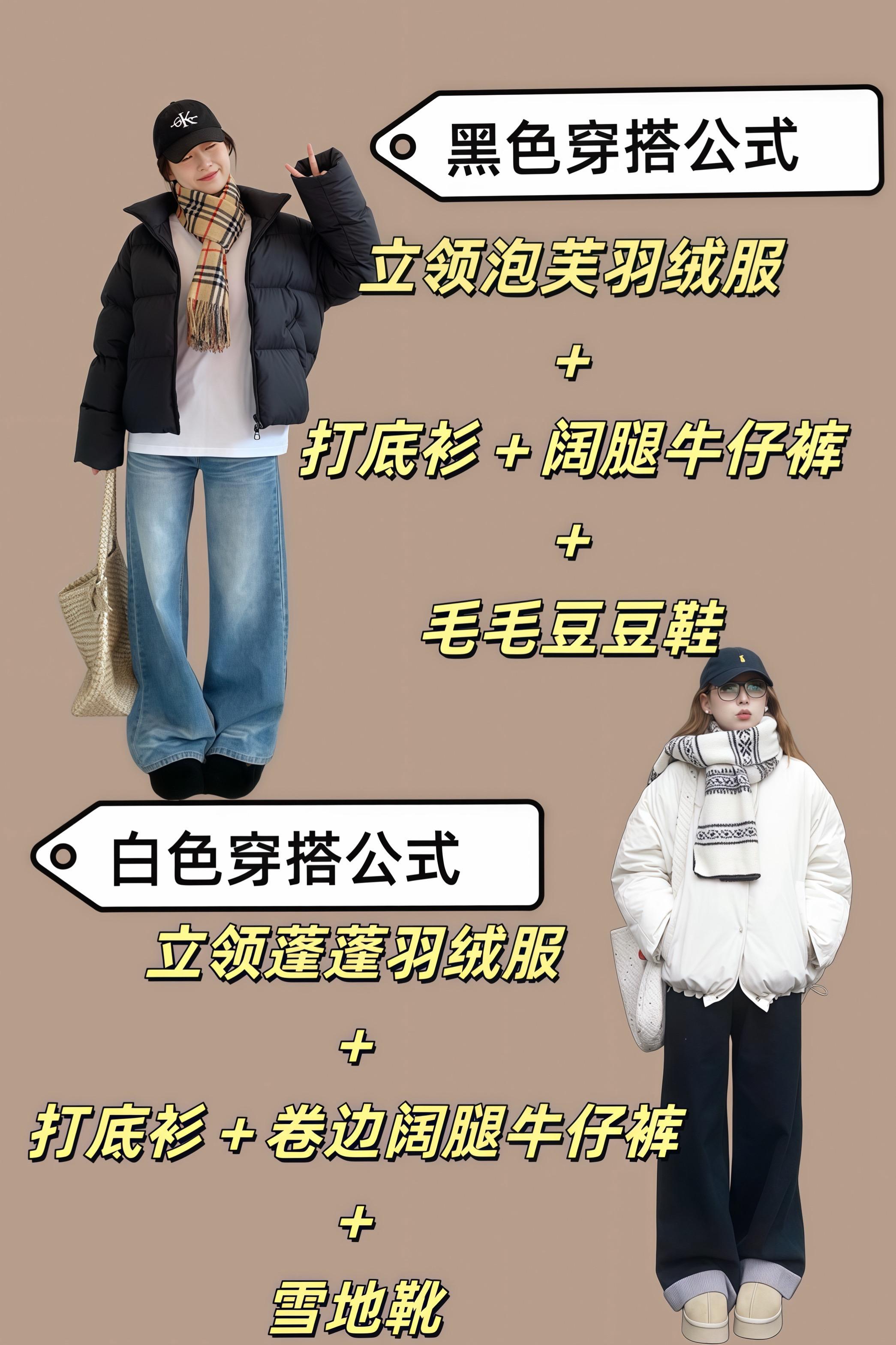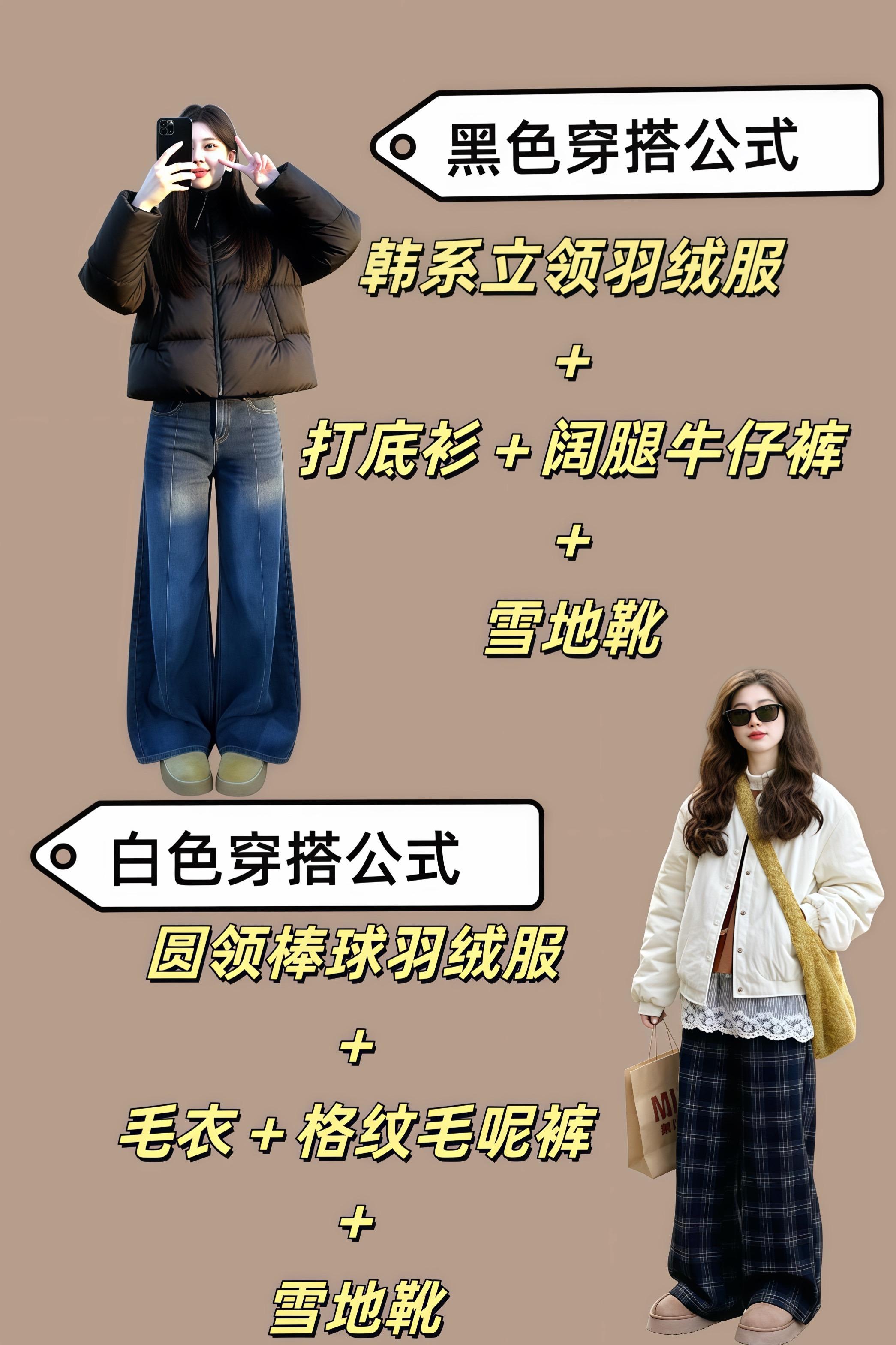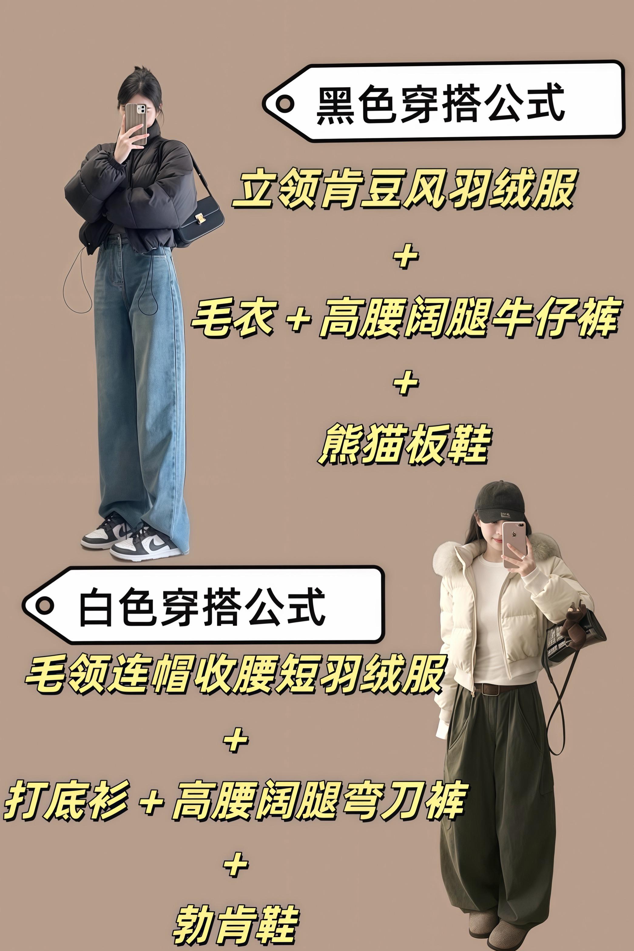 冬天一秒出门的百搭外套 冬季穿搭羽绒服穿搭 黑色系 白色系