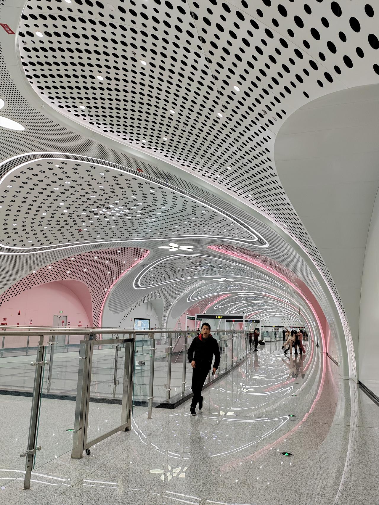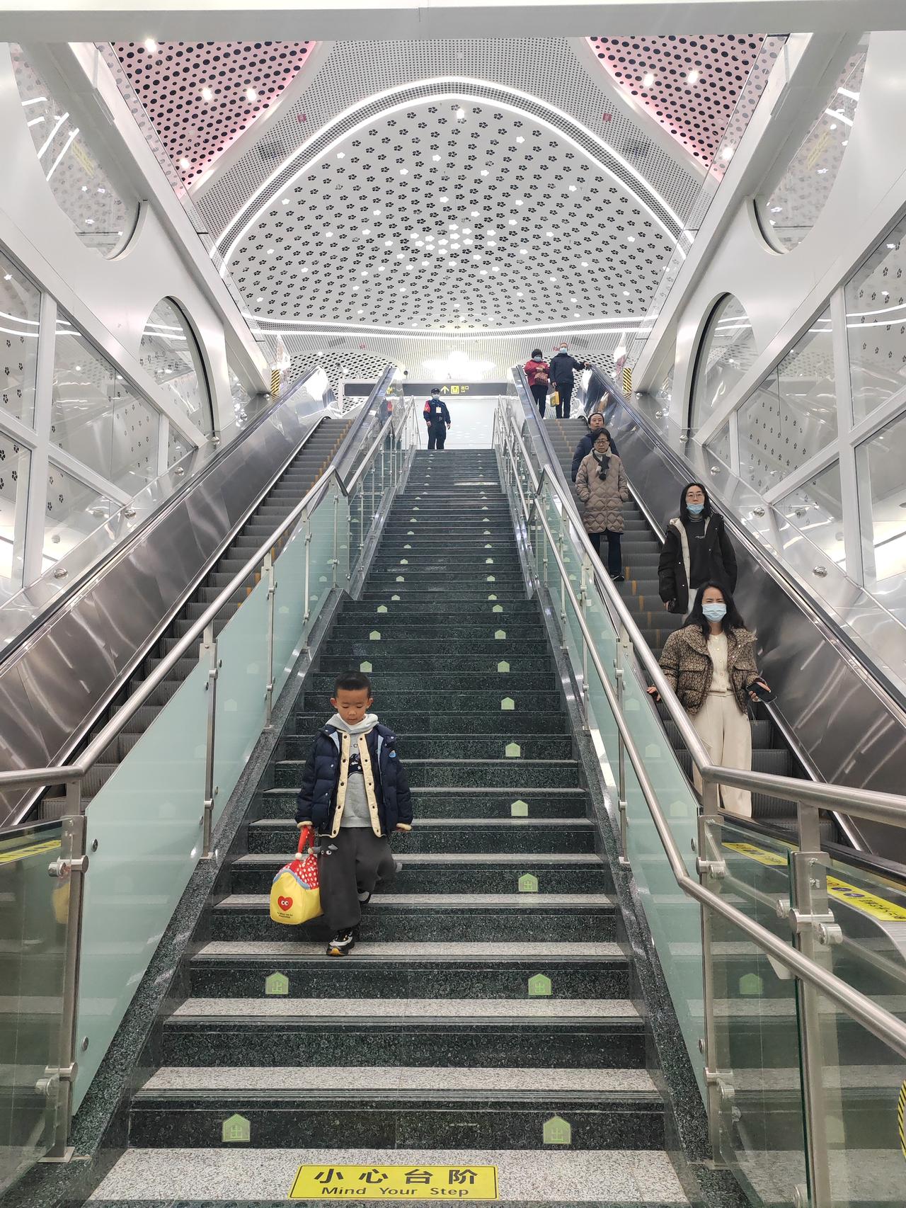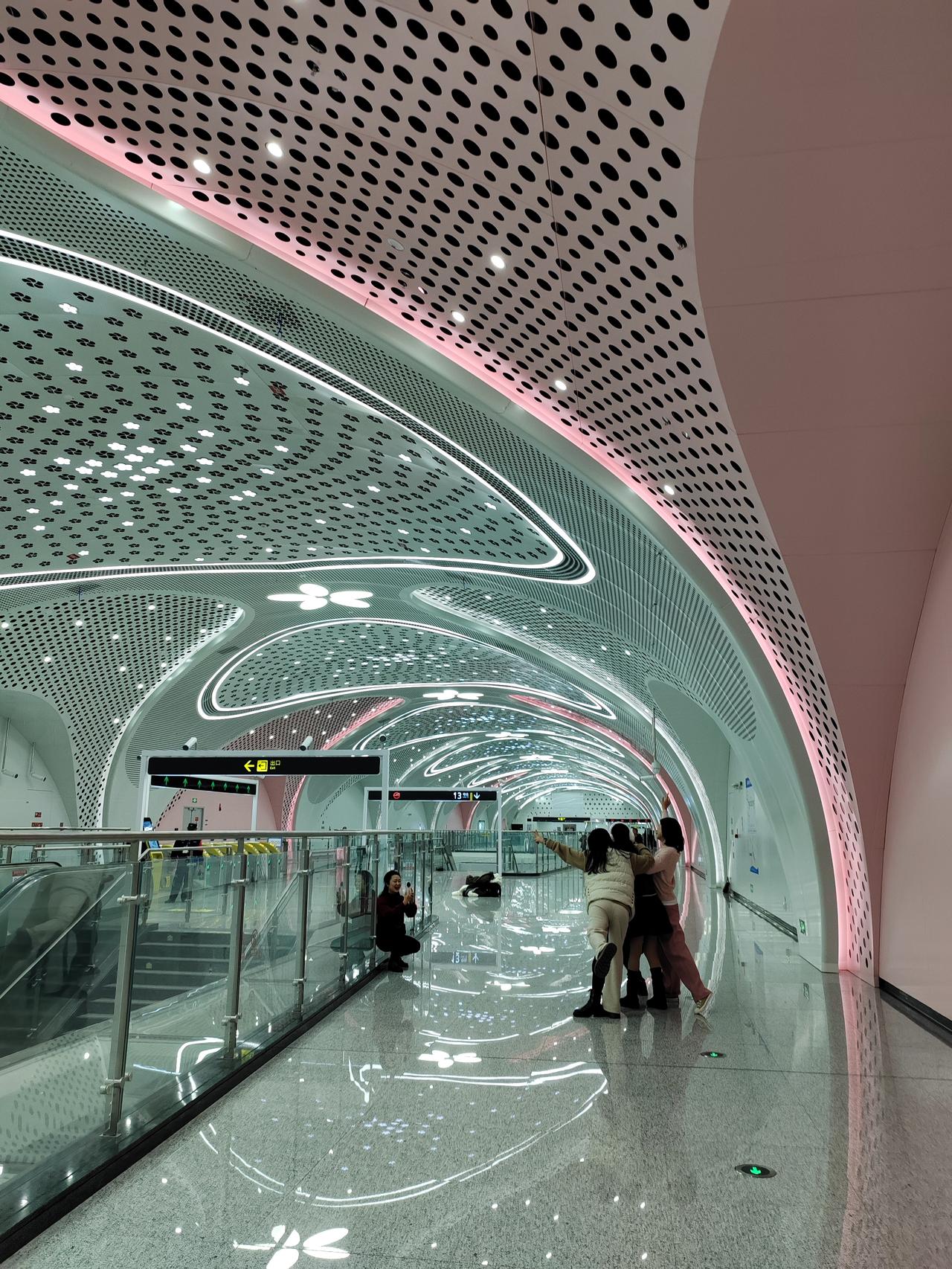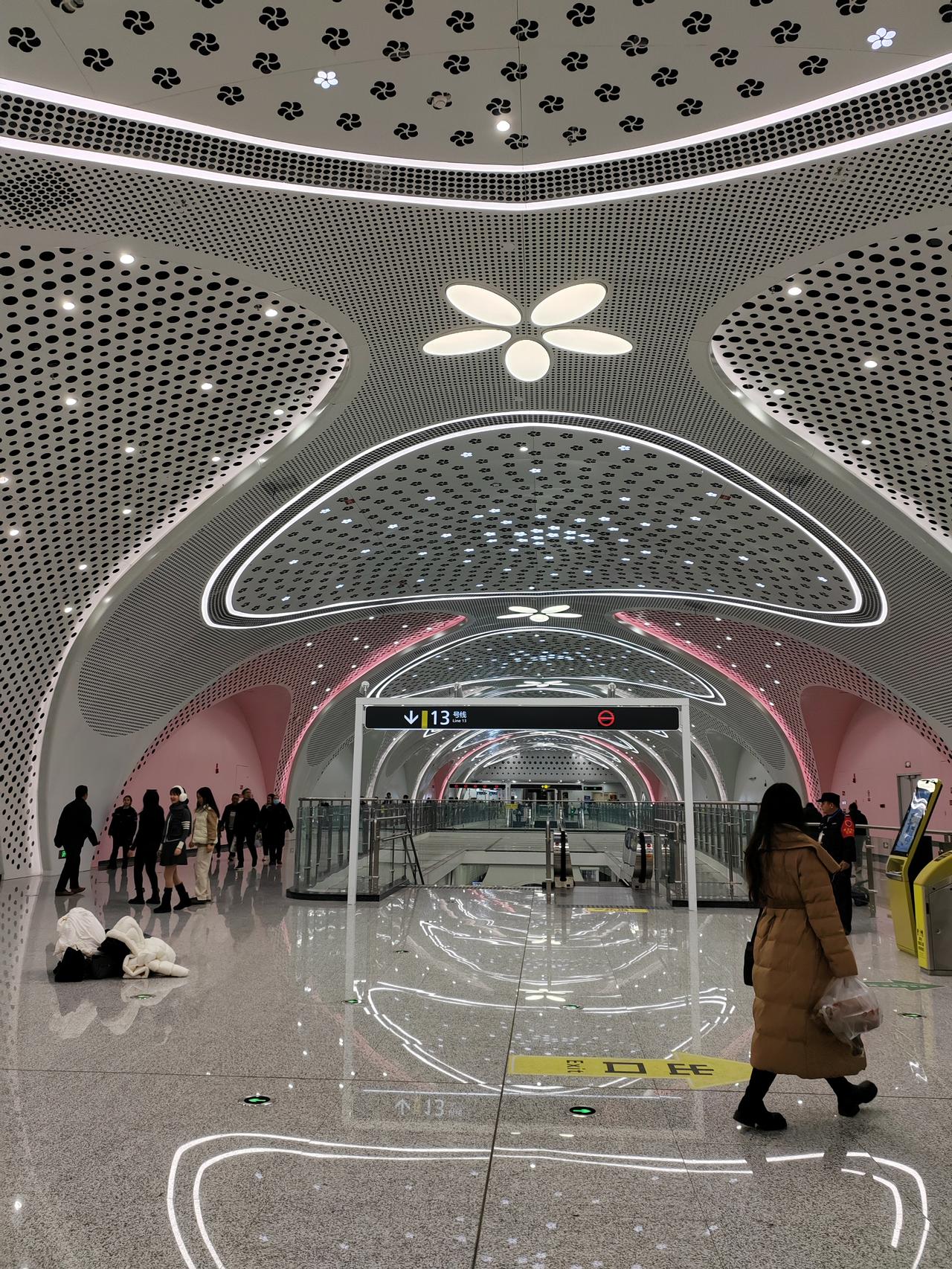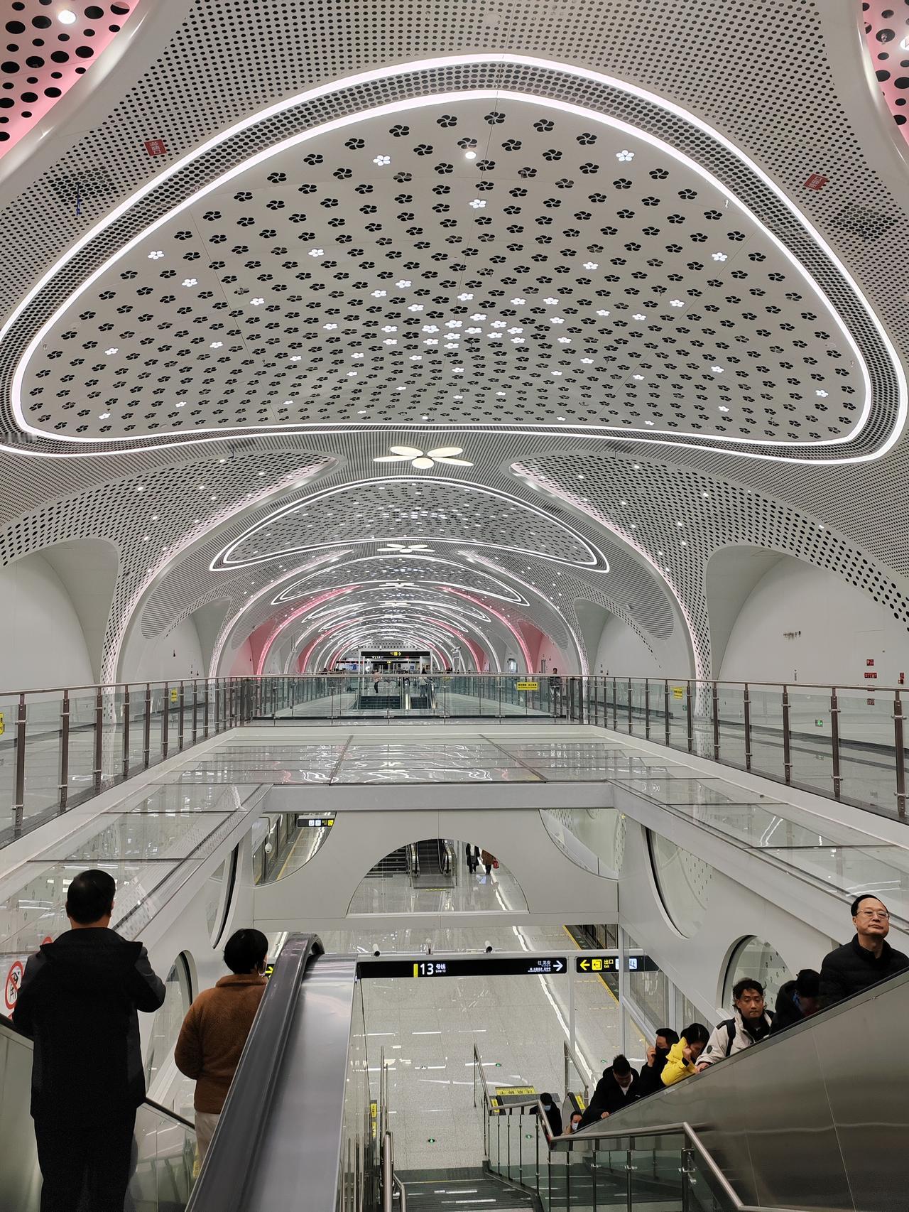 幸福梅林地铁🚇站:晨光从无柱穹顶倾泻而下,在弧形站厅的地面与墙面间温柔流转,仿佛整个空间都由流动的光影编织而成。乘客步履匆匆,身影被拉长成简约的线条,与站内流畅的弧线彼此交错。当“幸福梅林”四字在柔光中浮现时,科技的未来感与地名里的诗意悄然相融,清冷而明亮。