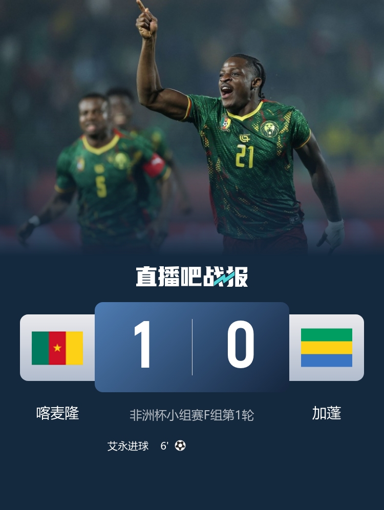 非洲杯小组赛F组第1轮,喀麦隆1-0战胜加蓬,姆伯莫助攻艾永进球。
