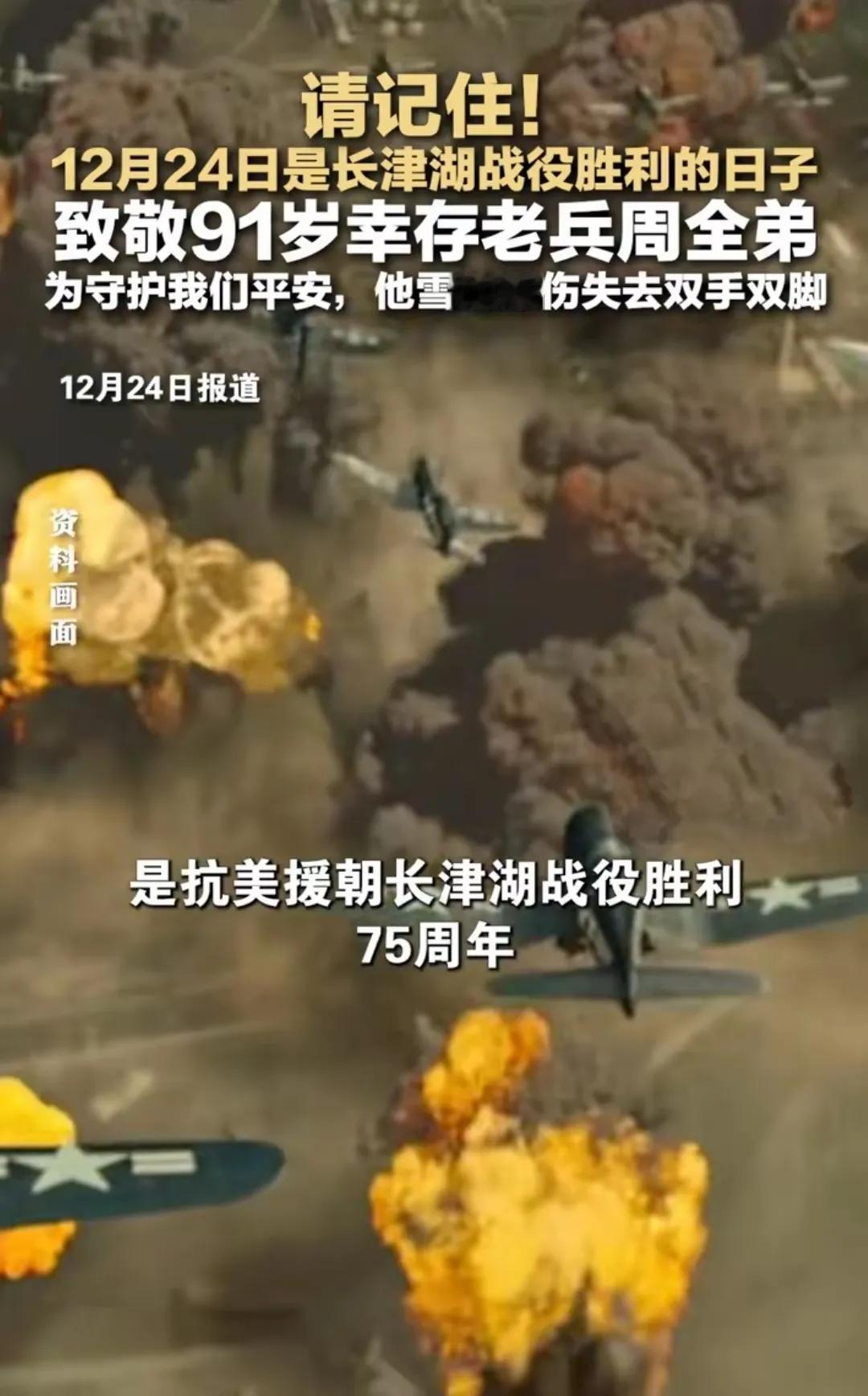 12月24日哪只是圣诞老人送礼物的平安夜,更是长津湖战役胜利的纪念日!零下三四十度的朝鲜战场,志愿军战士以血肉之躯死守国门,91岁的周全弟爷爷,就是活着的冰雕连见证者! 周爷爷当年趴黄草岭雪窝,啃雪吞冰死守三日,冻得动弹不得,眼睁睁看着战友冲锋,战后永远失去了双手双脚。如今谈起过往,老爷子眼里依旧燃着对祖国的滚烫赤诚,从未褪色! 如今咱平安夜吃苹果、拍圣诞树,尽享岁月静好,可千万别忘,这份安稳从不是天降,是周全弟们用残躯、用热血性命换来的!他们冻成冰雕也不退、粉身碎骨也不降,只为护后辈平安。 圣诞的热闹固然欢喜,更要把英雄模样刻进心底。守护和平从不靠松枝烛光,而是铭记那些风雪里扛起国门的人,这才是平安夜最该有的初心!