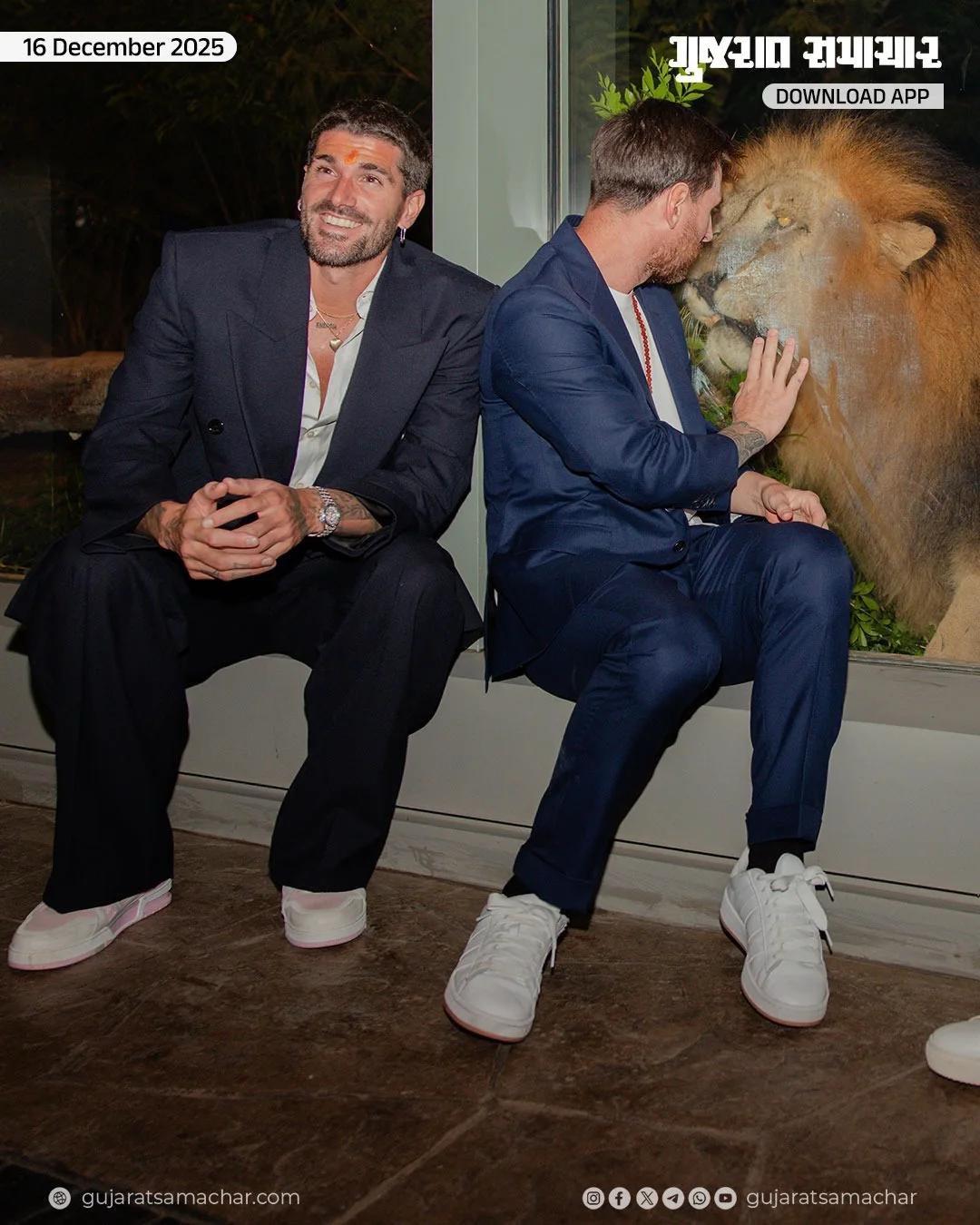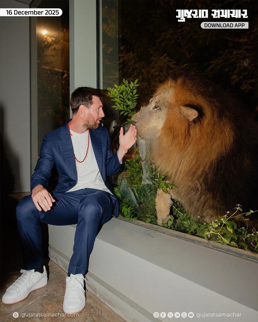 足球巨星梅西拜访印度古吉拉特邦。受邀事件便是和当地文化符号亚洲狮合影 ...