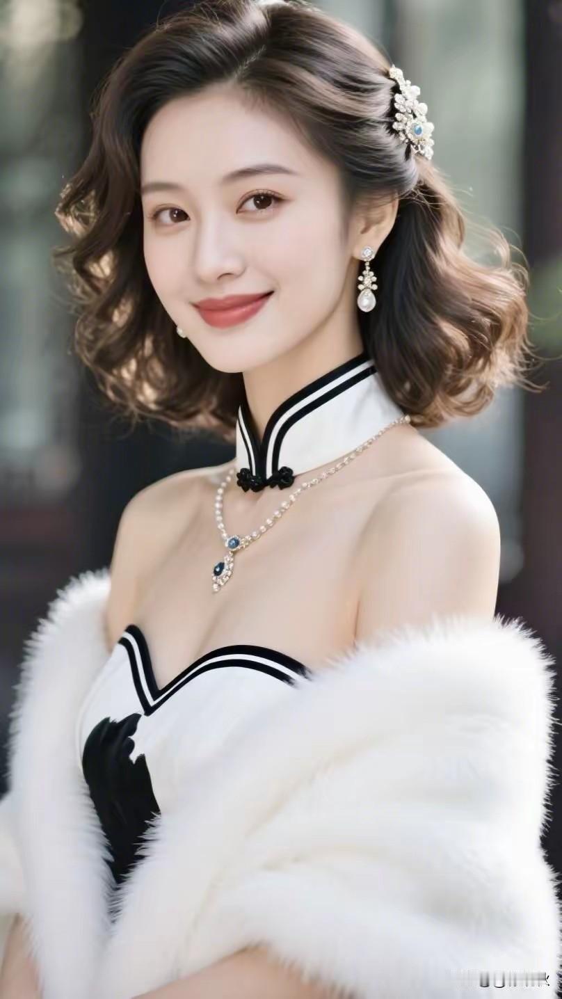 冰肌玉骨,明眸皓齿 出水芙蓉,天生丽质 月里嫦娥,仪态万方 软玉温香,楚楚动人 玉立亭亭着素袍, 青丝微卷缀金瑶。