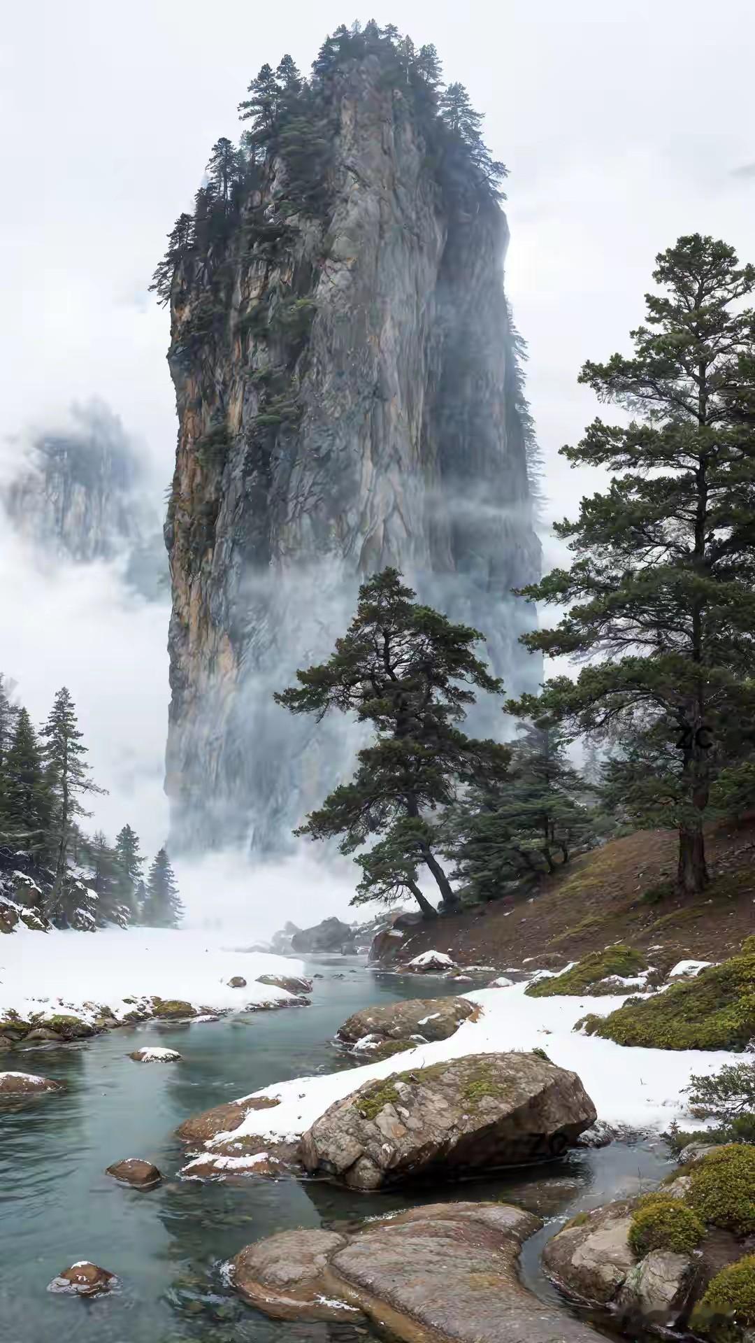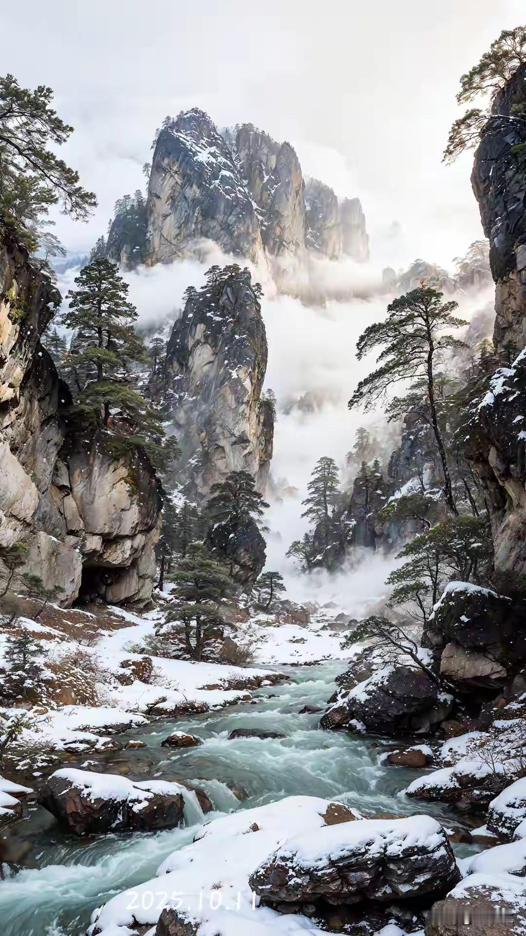 人间最美是金秋, 大山雪景真不错。 梨花飘絮满天舞 玉树琼花银装裹,