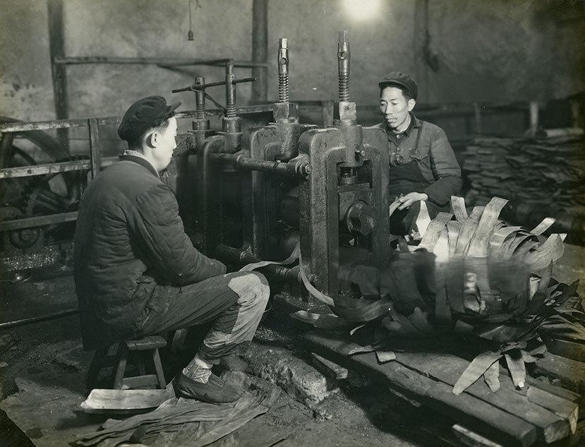 重庆化龙桥地区五六十年代工厂,车间里,两名工人身着厚实的工装,正专注操作一台老式机械,身旁堆着待加工的料件;车间墙面与设备都带着年代的厚重感,透着务实朴素的生产氛围。 五六十年代的化龙桥,正是重庆作为西南工业重镇的建设节点之一——当时这里布局了不少轻工、机械类工厂,折射出当时西南地区工业起步阶段的实干风貌。