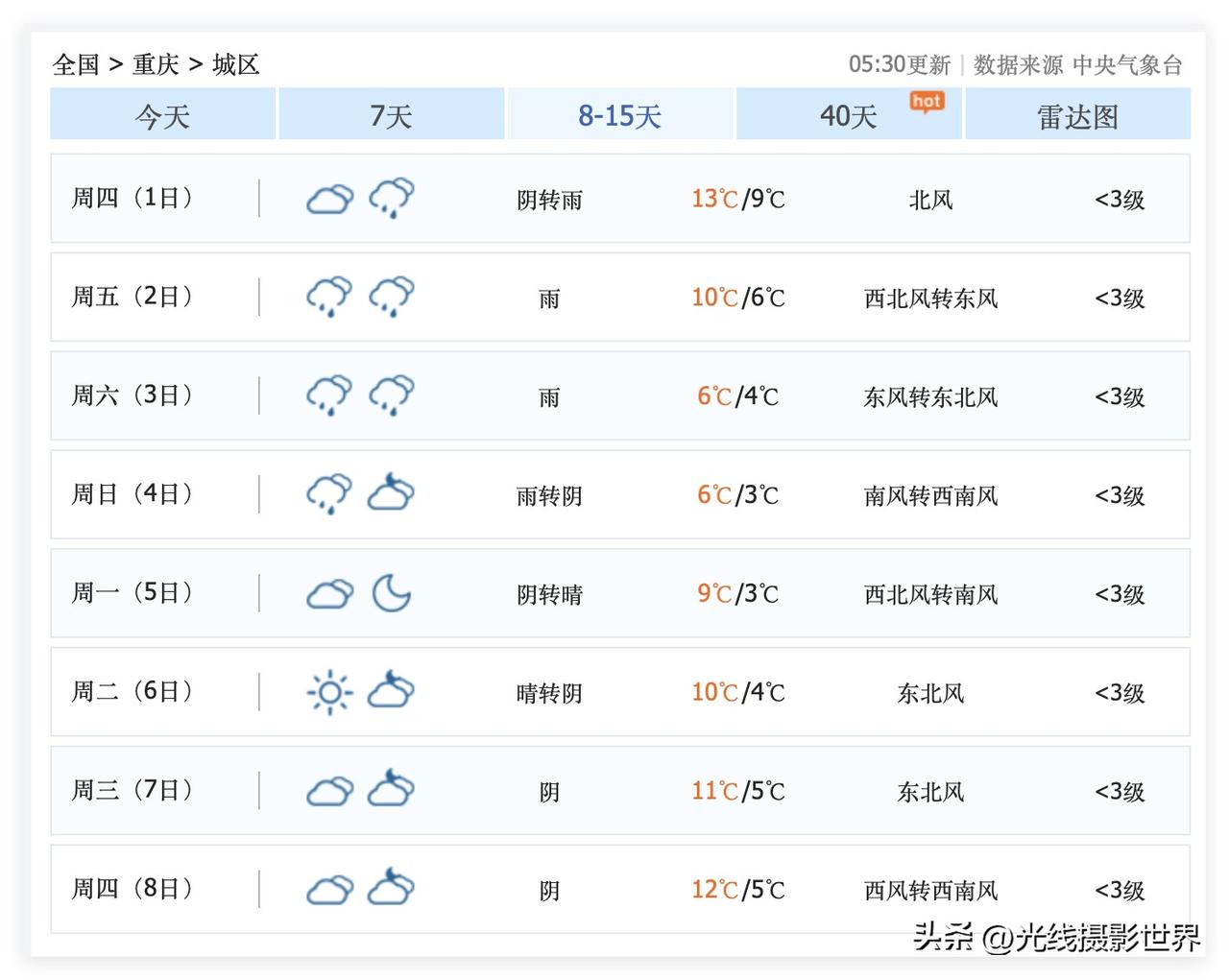 呜呜呜!好冷啊!12月25日,星期四,凌晨6点,重庆主城区,下着蒙蒙细雨,湿冷的魔法攻击,让我想要找个单身狗大家一起抱抱取暖啊!哎,今天白天,重庆主城区,小雨…… 12月25日,星期四,今天是个好日子,重庆两路口的菜园坝火车站正式开工建设……未来将会引入地铁18号线,2x等…… 好吧,好在,接下来,12月26日到31日,重庆主城区,不下雨,还时不时出昏昏太阳……还好还好! 只是,1月1日到4日,重庆主城区,阴雨连绵……重庆仙女山和金佛山,可能要频繁降雪,元旦节期间啊!
