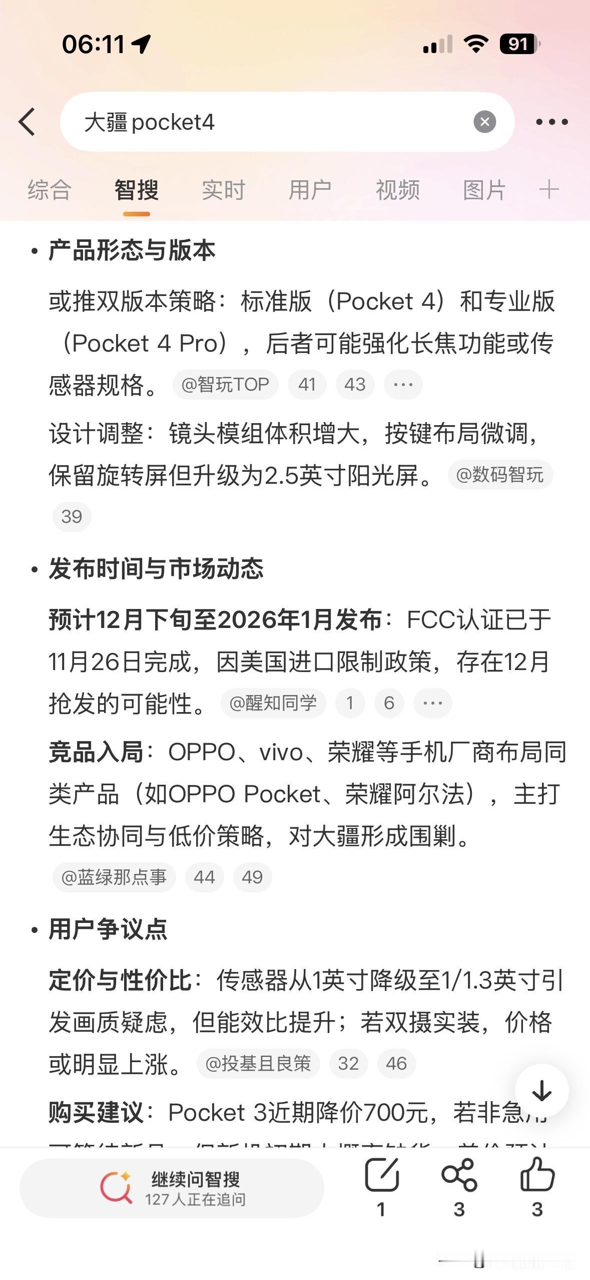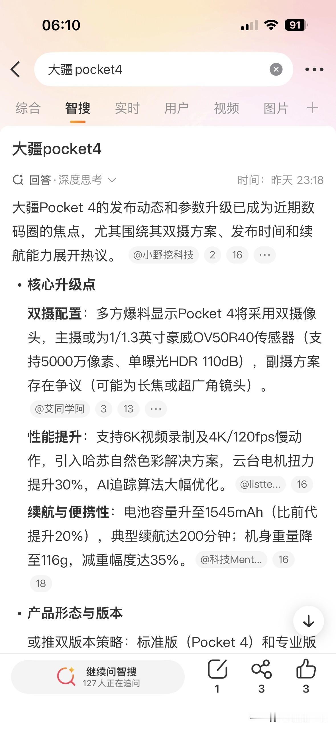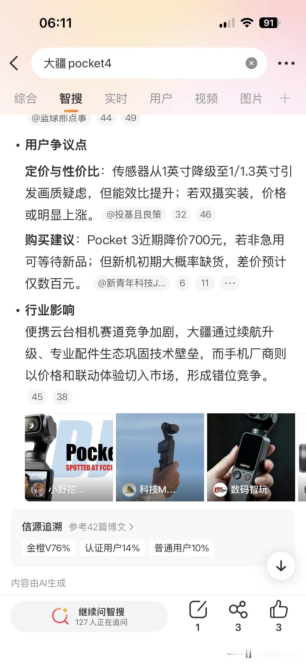 哎呀!害我一直都不敢出手大疆Pocket3啊!12月25日,圣诞节了,可是,大疆Pocket4,依旧云里雾里啊!总体来说,其实,大家对于Pocket4最大的期望,一个是方形摄像头,一个是增加长焦……至于其他的什么功能和性能,好像都无所谓吧?! 8K,有个屁用! 4K,240fps,也几乎没啥用! …… 屏幕更亮一点,麦克风更强一些……也都只是锦上添花! 总体来说,好像大家觉得长焦才是真正的刚需啊! 怎么讲呢?!好像确实是这样啊! 大家觉得呢?! 2026年即将来到……这个大疆的新品发布会……据说1月可能一口气推出10款新产品…… 所以,这个双十二,是啥都没买啊!不敢买啊! 啊啊啊! 光线摄影世界曾兰谈天说地