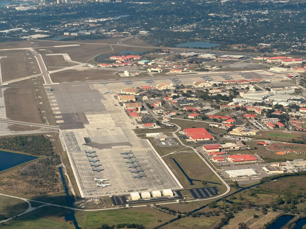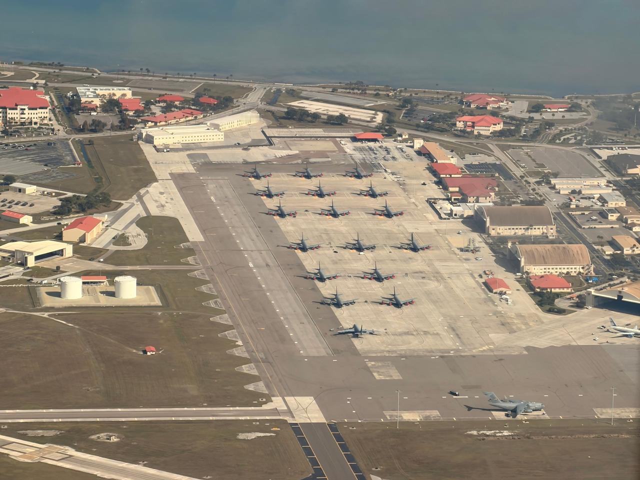 航拍! 美空军佛罗里达州麦克迪尔空军基地杀伤性武器数量持续增加。 机场基地部署有: •中央情报局C-32A“守门人”飞机 •1架C-17“环球霸王”军用运输机 •2架E-3G哨兵预警机 •8架UH-60“黑鹰”军用运输直升机。 •28架KC-135空中加油机。