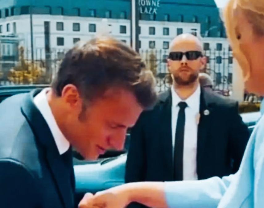墨镜🕶️男子是不是抢了马克龙的戏份? 墨镜🕶️男子站在那是不是特别酷啊? 马克龙这吻手礼在这样的注视下,不知有没有影响啊! 苏珊娜面对马克龙的吻手礼是不是有些紧张啊?