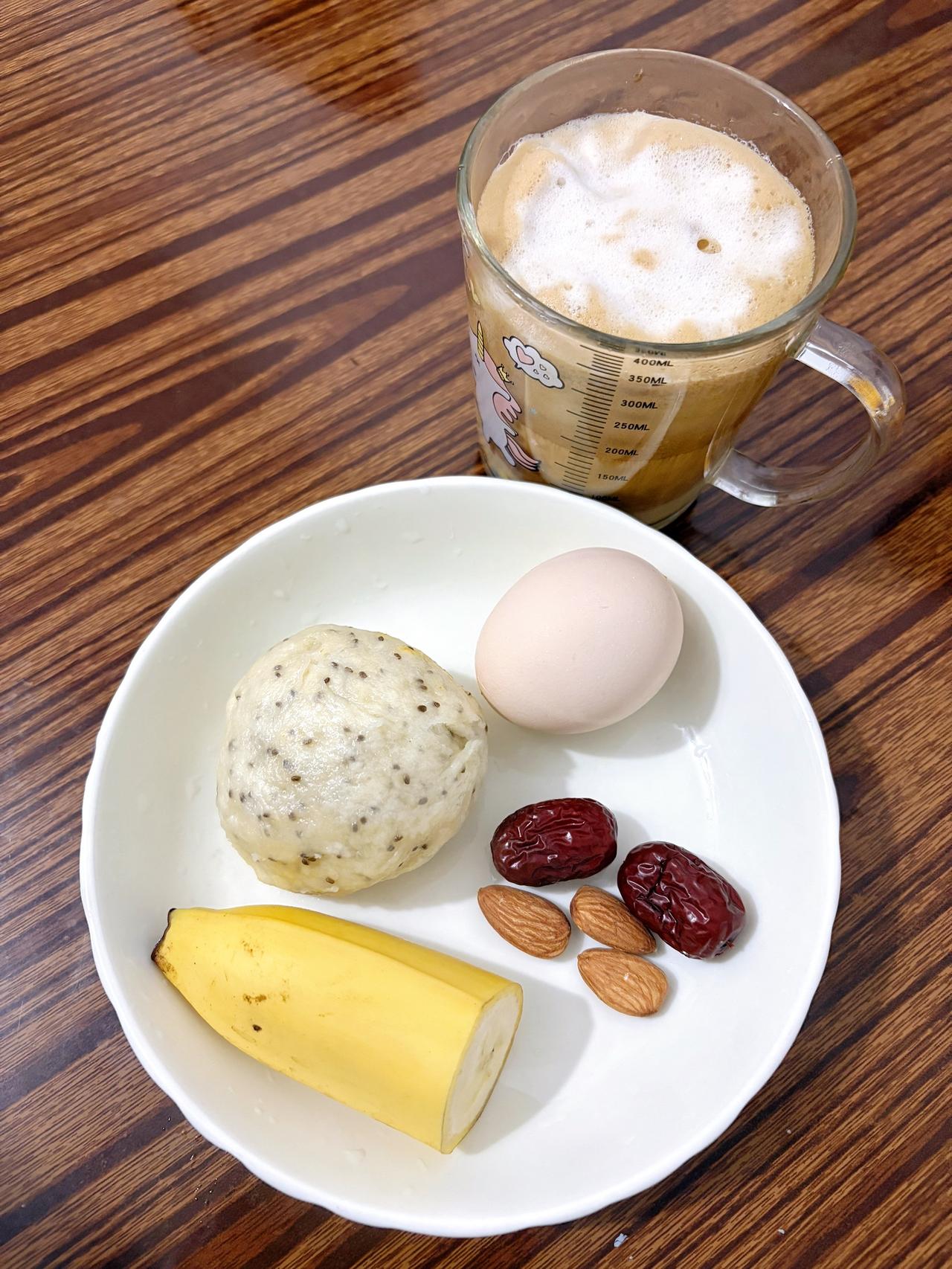 泪水打湿我的减脂餐,目标103斤,加油 今日减脂早餐:山药馒头+香蕉+干果+鸡蛋+拿铁