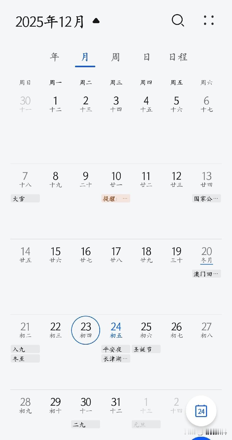 华为日历 12月24号 长津湖升纪念日 与圣诞节平安夜 同时被标记 国内不少日历 未将二者同时标记 只标圣诞节平安夜的 不在少数 这一点上 华为做得不错 圣诞节确实没啥可过的吧 圣诞跨年夜日历