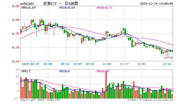 12月24日,疫苗ETF(562860)涨0.58%,成交额314.24万元。当日份额减少200.00万份,最新份额为3.37亿份,近20个交易日份额减少800.00万份。最新资产净值计算值为2.32亿元。