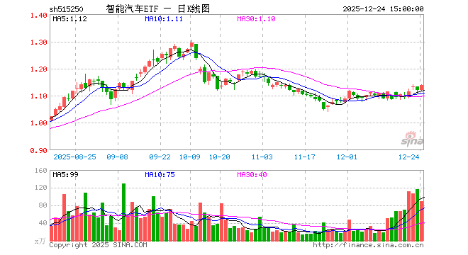12月24日,智能汽车ETF(515250)涨1.61%,成交额1.01亿元。当日份额增加4900.00万份,最新份额为6.36亿份,近20个交易日份额增加1.36亿份。最新资产净值计算值为7.24亿元。