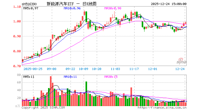 12月24日,新能源汽车ETF(516390)涨0.61%,成交额870.19万元。当日份额减少150.00万份,最新份额为2.88亿份,近20个交易日份额减少1200.00万份。最新资产净值计算值为2.86亿元。