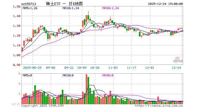 12月24日,稀土ETF(159713)涨0.55%,成交额5195.93万元。当日份额减少1050.00万份,最新份额为9.00亿份,近20个交易日份额减少1.55亿份。最新资产净值计算值为11.50亿元。