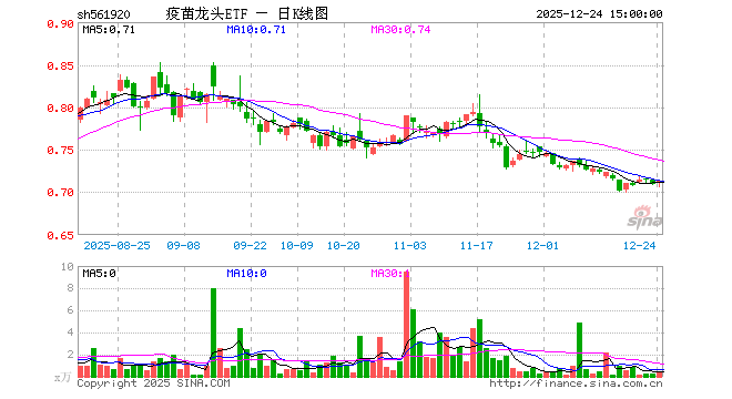 12月24日,疫苗龙头ETF(561920)涨0.56%,成交额35.46万元。当日份额减少300.00万份,最新份额为3169.20万份,近20个交易日份额减少400.00万份。最新资产净值计算值为2263.13万元。