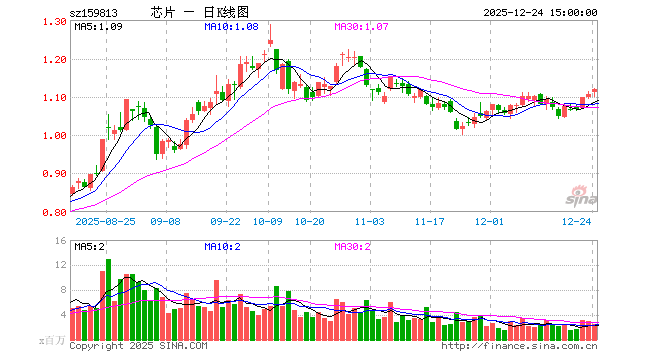 12月24日,半导体ETF(159813)涨1.08%,成交额2.84亿元。当日份额减少9500.00万份,最新份额为55.21亿份,近20个交易日份额减少5100.00万份。最新资产净值计算值为61.82亿元。