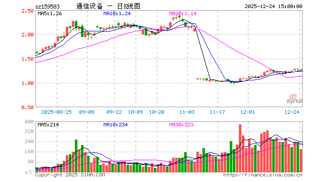 12月24日,通信设备ETF(159583)涨1.57%,成交额2.29亿元。当日份额减少1800.00万份,最新份额为11.13亿份,近20个交易日份额增加1.90亿份。最新资产净值计算值为14.35亿元。