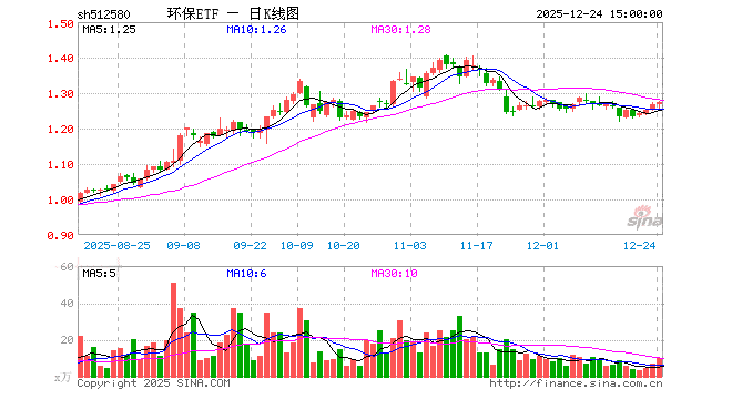 12月24日,环保ETF(512580)涨0.55%,成交额1237.47万元。当日份额减少300.00万份,最新份额为9.72亿份,近20个交易日份额减少2640.00万份。最新资产净值计算值为12.39亿元。