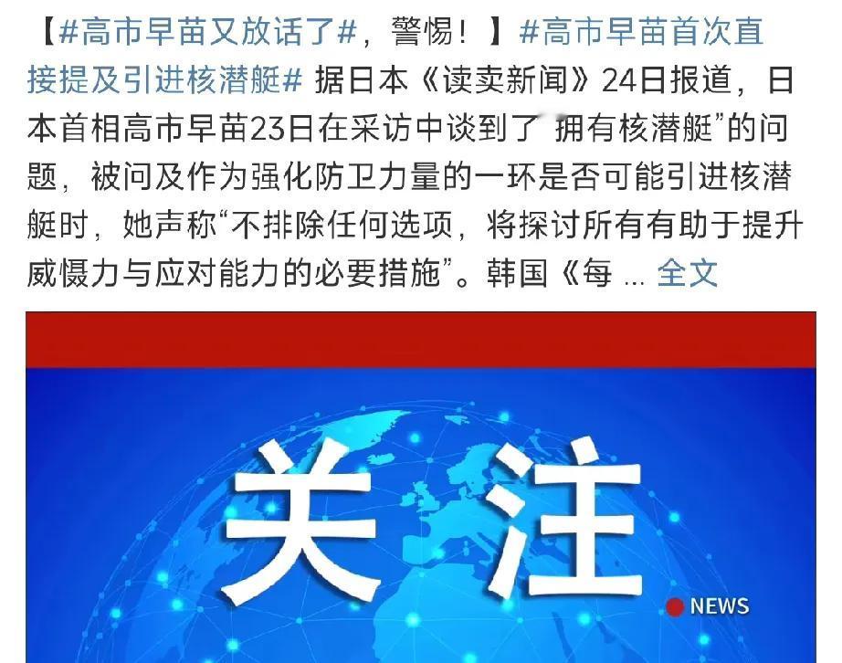 日本的事就是中国的事! 不能让高市早苗占尽上风,不能让高市早苗一次次占尽所有政治言行与军事议题主动性: 高市早苗政府上台以来,想说啥就说啥,想做啥就做啥,想部署导弹就部署导弹,想登中国台湾岛就登中国台湾岛,今天也放话明天也放话…… 必须对高市早苗政府进行金属性回击,才能让日本军国主义余毒彻底有所忌惮。 一句话: 日本的事就是中国的事!
