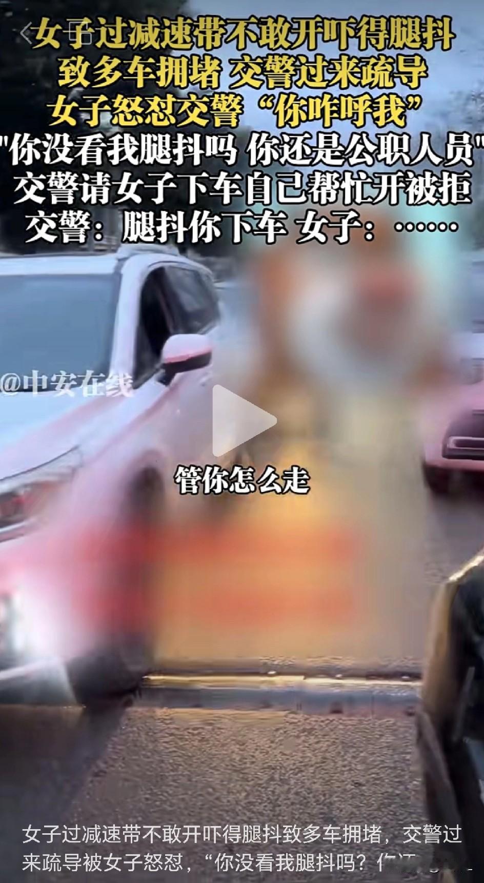 马路惊魂减速带,女司机腿抖成“振动模式”!交警帮忙反被怼,网友:这谁顶得住? 减速带,谁没见过?可你见过能把司机吓到腿抖成“震动模式”、堵住半条街的减速带吗? 就在12月22日,安徽蚌埠街头,一位女司机把车开到减速带前,突然“卡壳”了——不是车坏了,是人“绷”住了。只见她紧握方向盘,脚不敢踩油,腿抖得那叫一个明显,后头的车排起了长龙,喇叭声此起彼伏,场面一度尴尬。 交警赶到现场,本想帮忙疏导,没想到一开口,反被女司机“怼”了回来: “你没看我腿抖吗?!你还是公职人员呢!” 交警大哥也是好脾气,没跟她急,直接提议:“您要实在害怕,我帮您开过去?” 结果,女子一口回绝! 这下可好,车不动,人不下,路不通。交警站一边,女司机坐车里,两人之间仿佛隔着一道“心理减速带”,比路面上那个橡胶带子难跨多了。 围观网友都乐了: “减速带:这辈子没想过自己这么大威力。” “腿抖归腿抖,咱好歹靠边让让呀!” “交警太难了,软硬兼施都不好使,这是遇上‘防御模式’全开的女司机了。” “建议给这姐们配个心理减速带,物理的归物理,心理的归心理。” 玩笑归玩笑,这事儿倒真反映了不少新手或紧张型司机的现实困境:知道该过去,身体却“死机”;别人越催,心里越慌。 但话说回来,公共道路毕竟不是自家客厅,过度紧张影响交通,还是得提前练好心态、找对方法。 如果真对某些路况发怵,不妨提前绕行,或者找个陪驾多练几次。毕竟,安全第一,心态也得跟上啊! 马路不是舞台,咱不当“喜剧人”。放松心情,平安出行,比啥都强! —— 行车无小事,笑过之后,别忘了安全永远是第一速。 素材来源:深圳新闻网,侵联删!