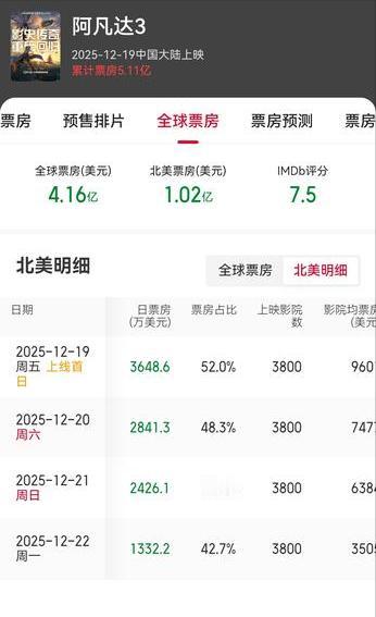 看好《阿凡达3》票房的,在我的评论下面留言要和我打赌的朋友,有的还专门收藏了,等着看我被打脸,甚至认为平安夜和圣诞节该片的票房会大爆的,你们还坚持自己的看法吗?准备好给我银子了吗? 最近有两部好莱坞电影在中国内地电影市场上映,一部是好莱坞超级大片《阿凡达3》,5亿美金的制作成本,另外一部是奇幻电影《魔法坏女巫2》。 昨日,《魔法坏女巫2》在中国内地电影市场上映,首日票房只有77.5万人民币,而该片在北美拿下了3.22亿美元的票房,首日票房6911万美元,首周1.4亿美元,这种歌舞奇幻电影在美国是有市场的,但在中国内地电影市场,是没有市场的,即便是第一部也只有1532万人民币的票房,但第一部在全球拿下了7.48亿美元的票房。 而《阿凡达3》在北美首日票房只有3648万美元,首周8800万美元,虽然该片在咱们国内的票房比《魔法坏女巫2》高太多,但是,其北美的票房表现被后者碾压,也就是说,虽然《阿凡达3》在北美的票房一定会比在中国内地电影市场高,但很大概率连《魔法坏女巫2》都超不过。 不是说《阿凡达3》不好,该片在北美的评分是7.5,而《魔法坏女巫2》的评分是6.9,前者口碑好,导演名气大,制作成本高,但票房上可能无法超过后者。这就是现实。 所以,我还是坚持我之前对于《阿凡达3》的预测,不要说20亿票房无法企及,连15亿都没有可能。向我挑战,对我冷嘲热讽的朋友,到时候别忘了你们说的话,也别忘了礼貌地表达一下你们的歉意。
