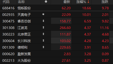 上证报中国证券网讯12月25日早盘,存储芯片概念延续强势,截至9时35分,恒烁股份涨超18%,北京君正、香农芯创、江波龙、德明利跟涨。
