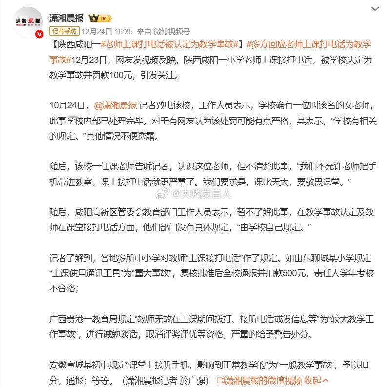 老师上课打电话被认定为教学事故 你就逮着鸡毛当令箭吧老师上课接打私人电话,你学校可以说不允许,但是打电话为了班集体呢哪个学生点名不到,不能打电话问问吗;学生有个急性病灾,不能拨打个急救电话吗?“课比天大”?你校领导先把这句话记在心里吧多方回应老师上课打电话为教学事故,热点观点
