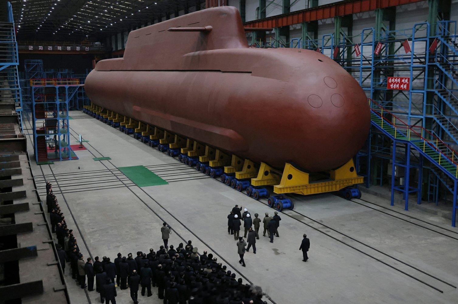 金正恩视察朝鲜核潜艇建造金正恩视察朝鲜8700吨级核动力战略导弹潜艇建造工作。强