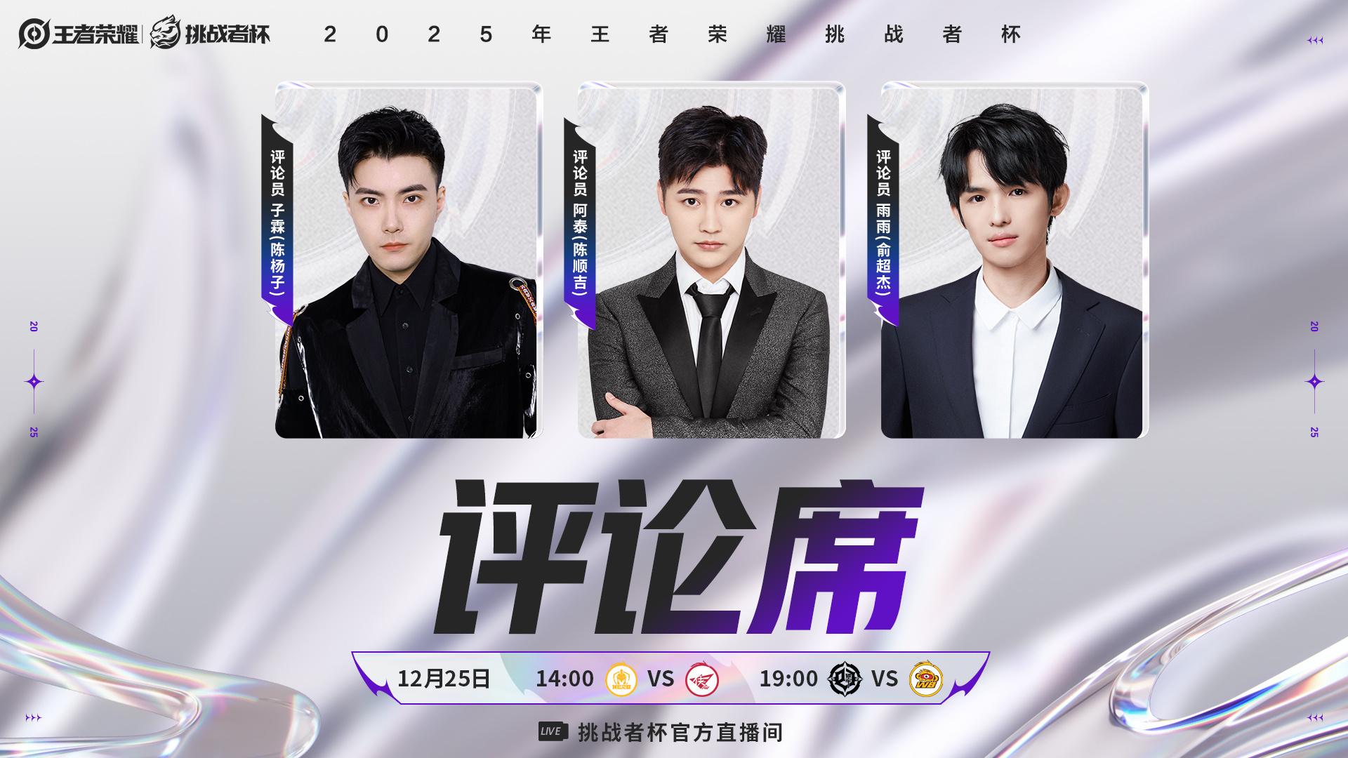 评论席:解说子霖(陈杨子)阿泰AT(陈顺吉)雨雨呀YuY(俞超杰)
