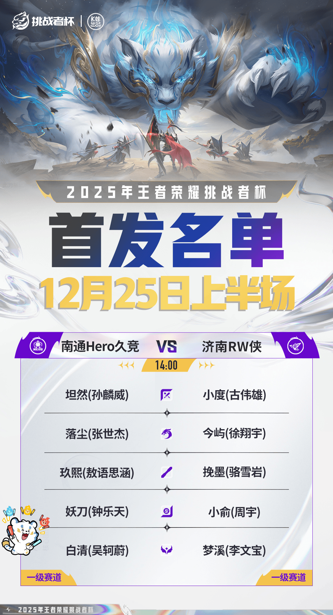 2025王者荣耀挑战者杯双败淘汰赛D4[首发名单]送达!