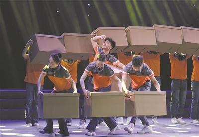 晚会现场,舞蹈《快递小哥》聚焦新就业形态劳动者。郑鹏摄