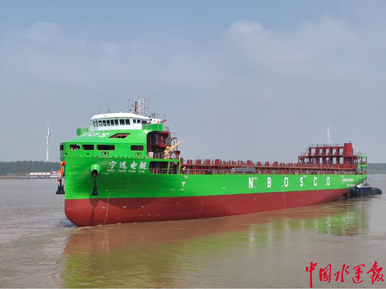 全球最大、国内首艘万吨级纯电动集装箱海船“宁远电鲲”轮吉水。