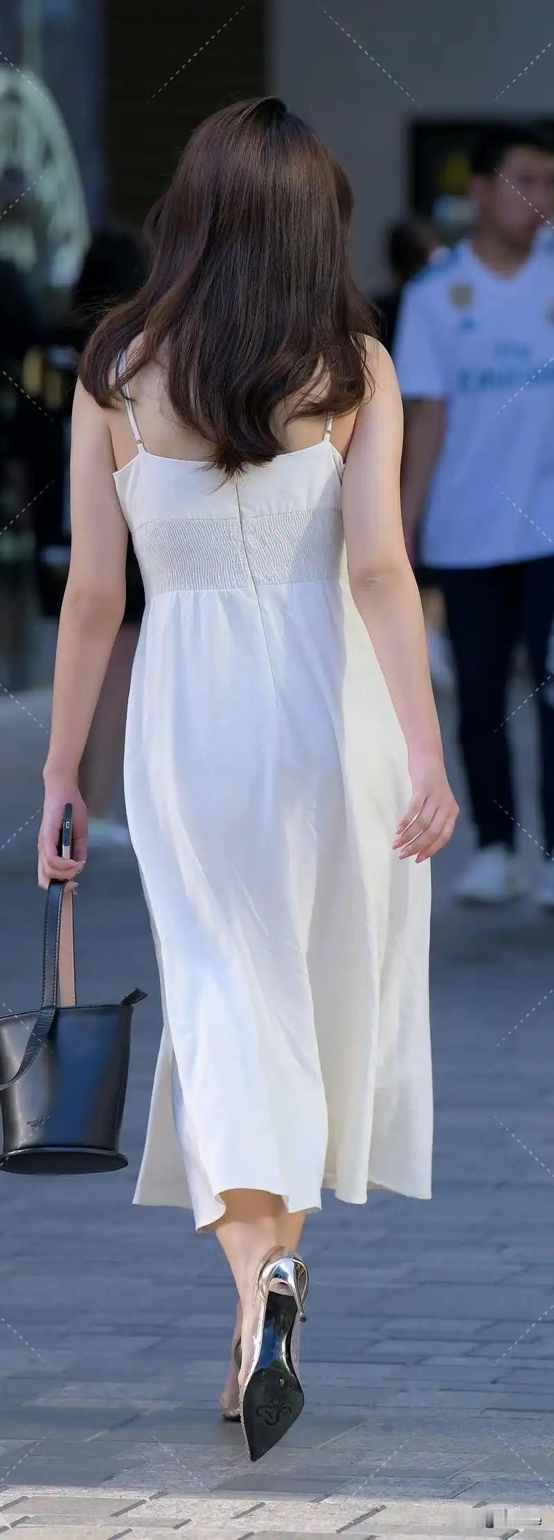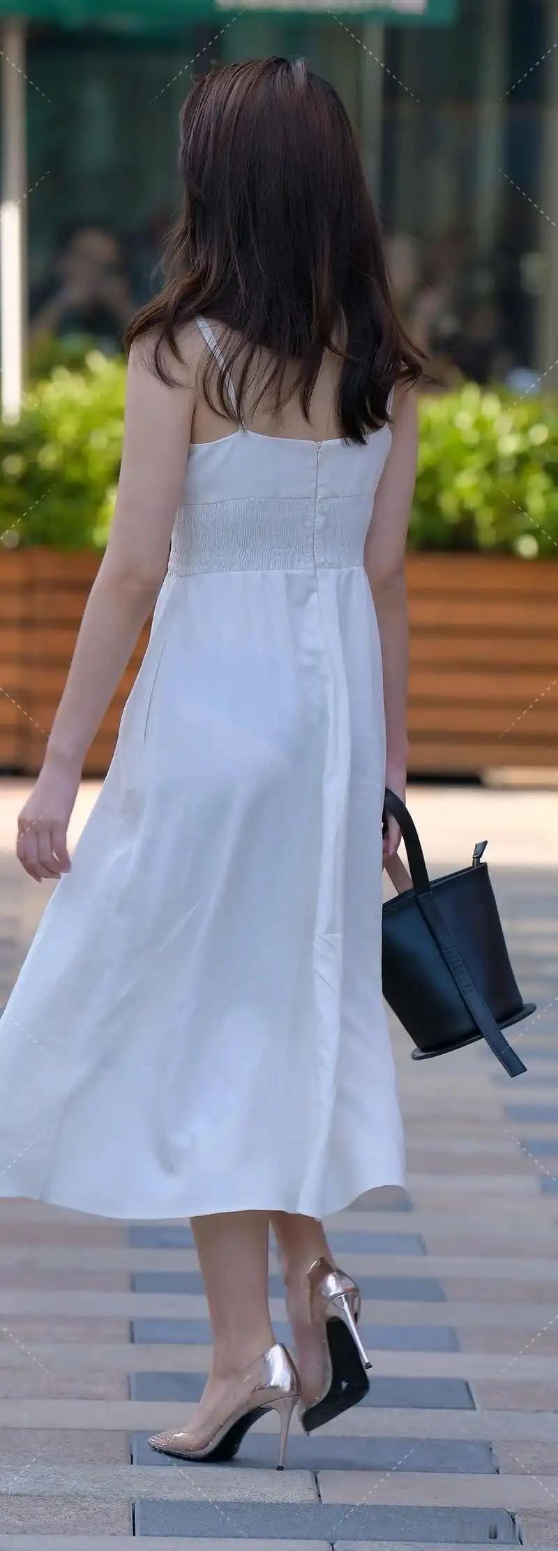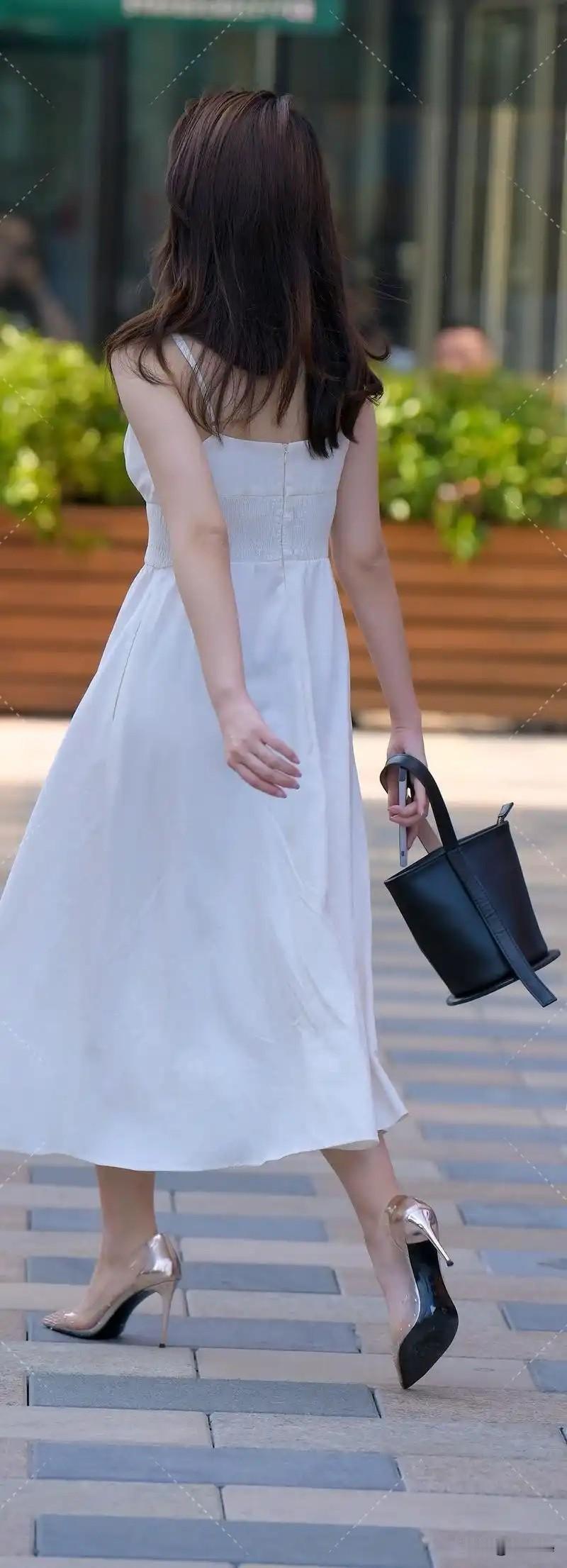 优雅漫步,白色连衣裙与高跟鞋的完美搭配,尽显都市女性魅力。