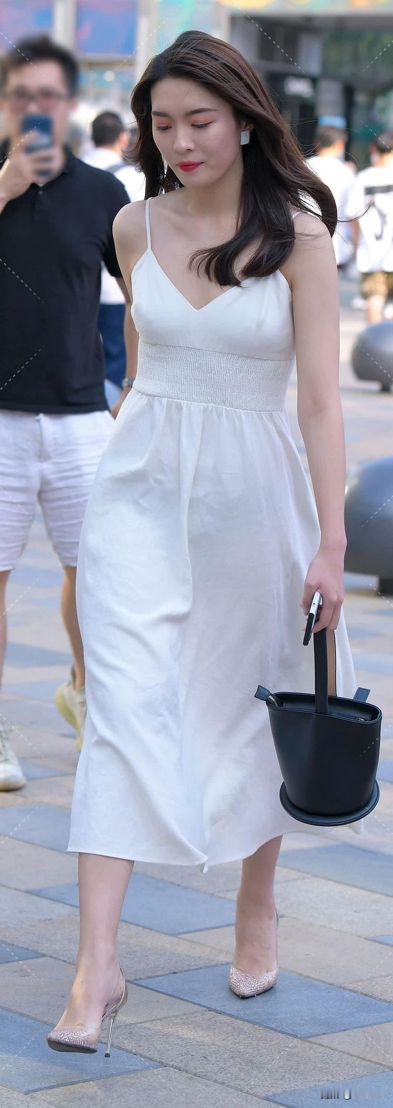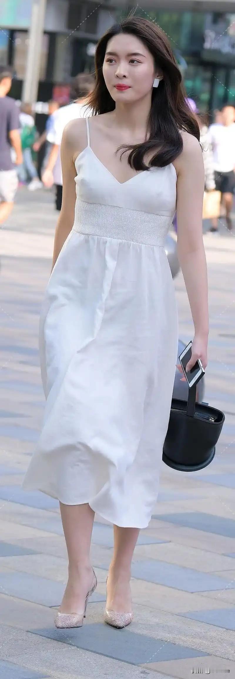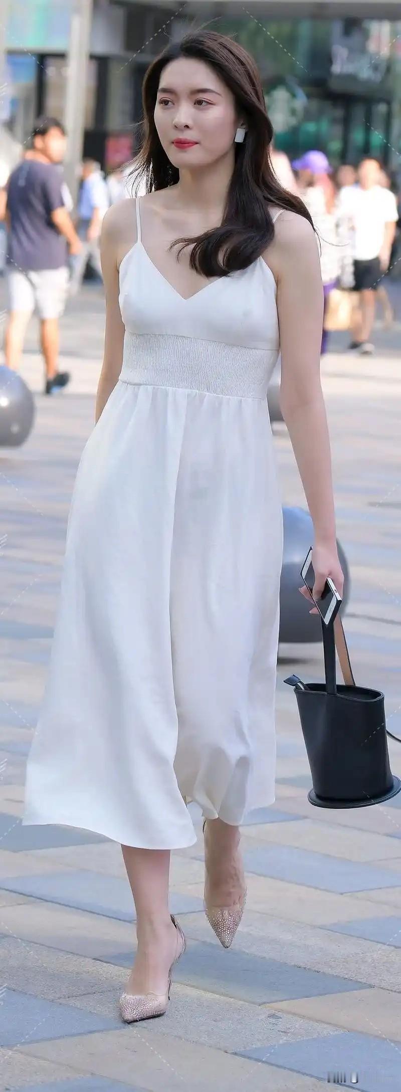 优雅漫步,白色连衣裙与高跟鞋的完美搭配,尽显都市女性魅力。