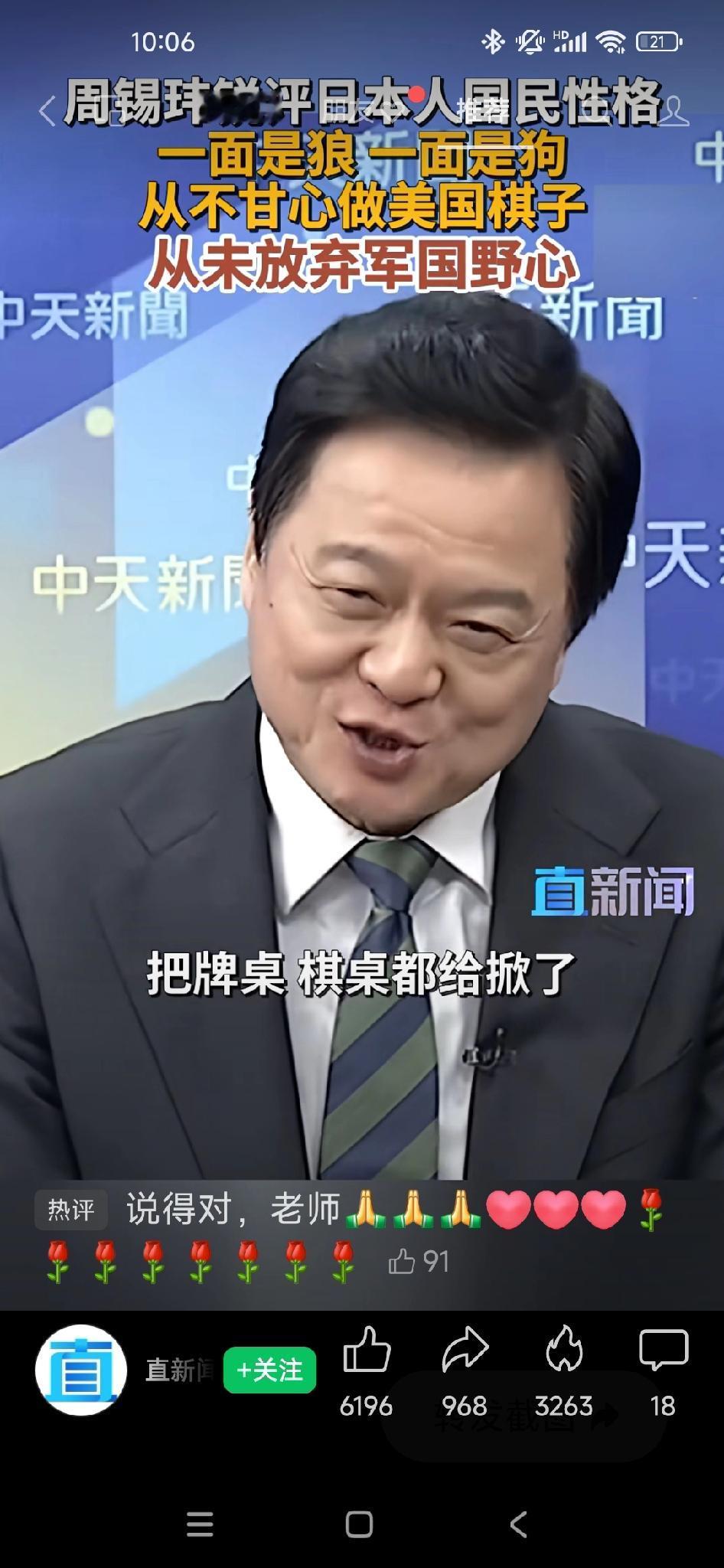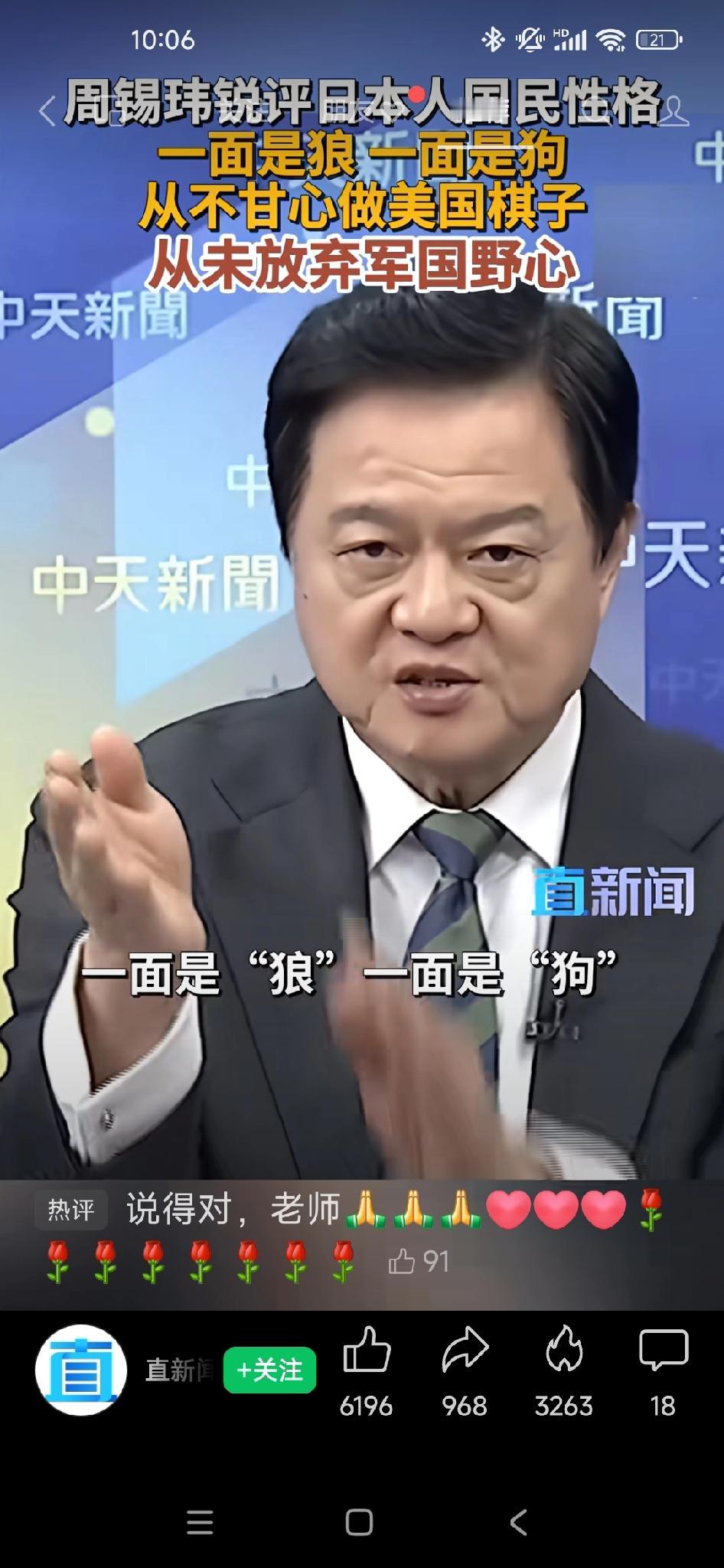 周锡玮锐评日本,绝非美国“棋子”,而是狼狗双面人格! 日本人为什么会说这些话?做这些事?尤其在这个时候。很多人讲是日本在做美国的“棋子”,我认为不全是这样。 他不是为了做美国的“棋子”而已,他是想要翻脸,把棋桌牌桌都掀了。 你仔细去看日本人的个性,他的个性是分裂的,人格是分裂的。用两种动物来形容,一面是狼,一面是狗。 日本人一直都有狼子野心,你看第二次世界大战就是这样。 我们说日本人还有狗的个性。狗的个性是什么?就是你只要把打到怕,他就跟狗一样乖乖听话。 他想做美国的“忠狗”,但他还有狼性,就是极右翼的军国主义,日本从来没有放弃。
