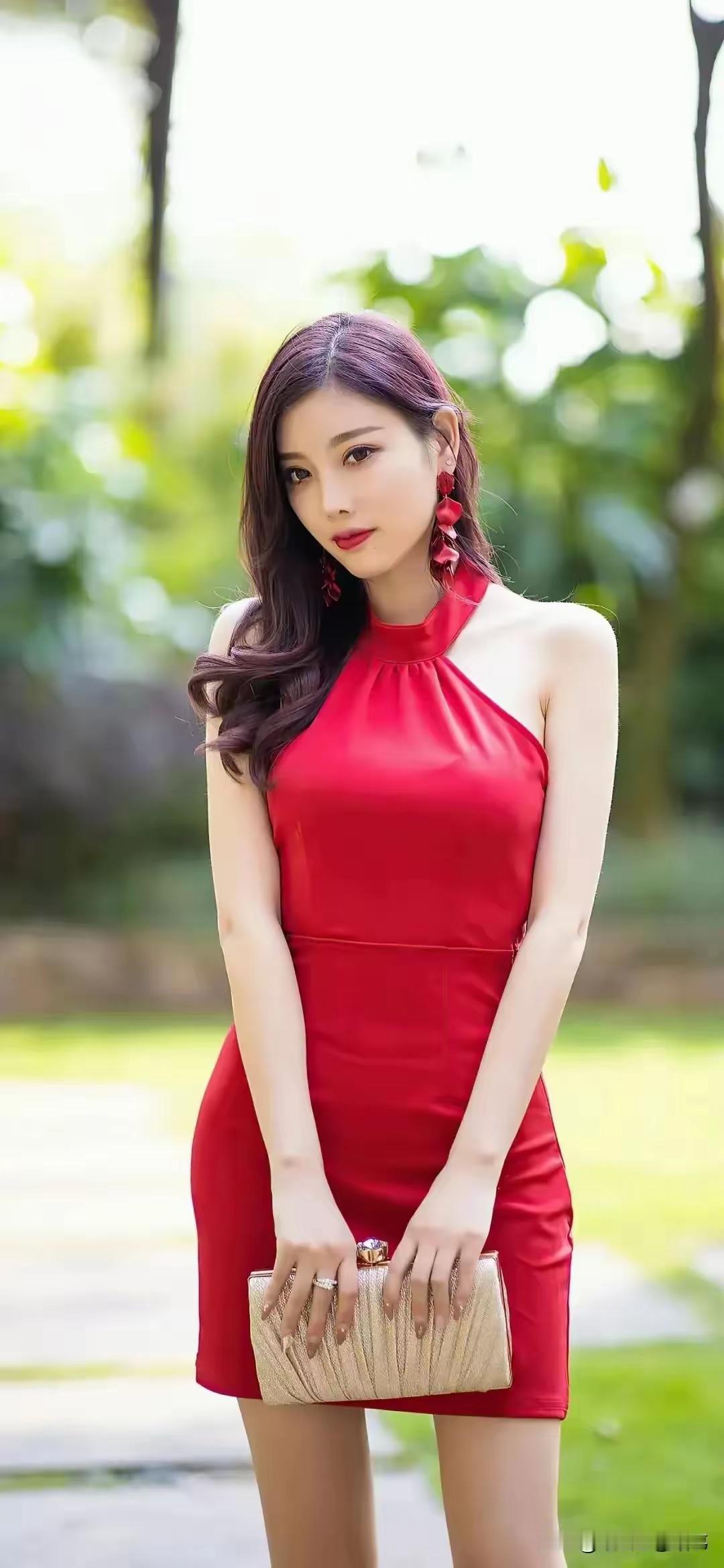 红裙优雅,绿意盎然,时尚与自然的完美融合。你听过最励志的一句文案是什么 成熟女人