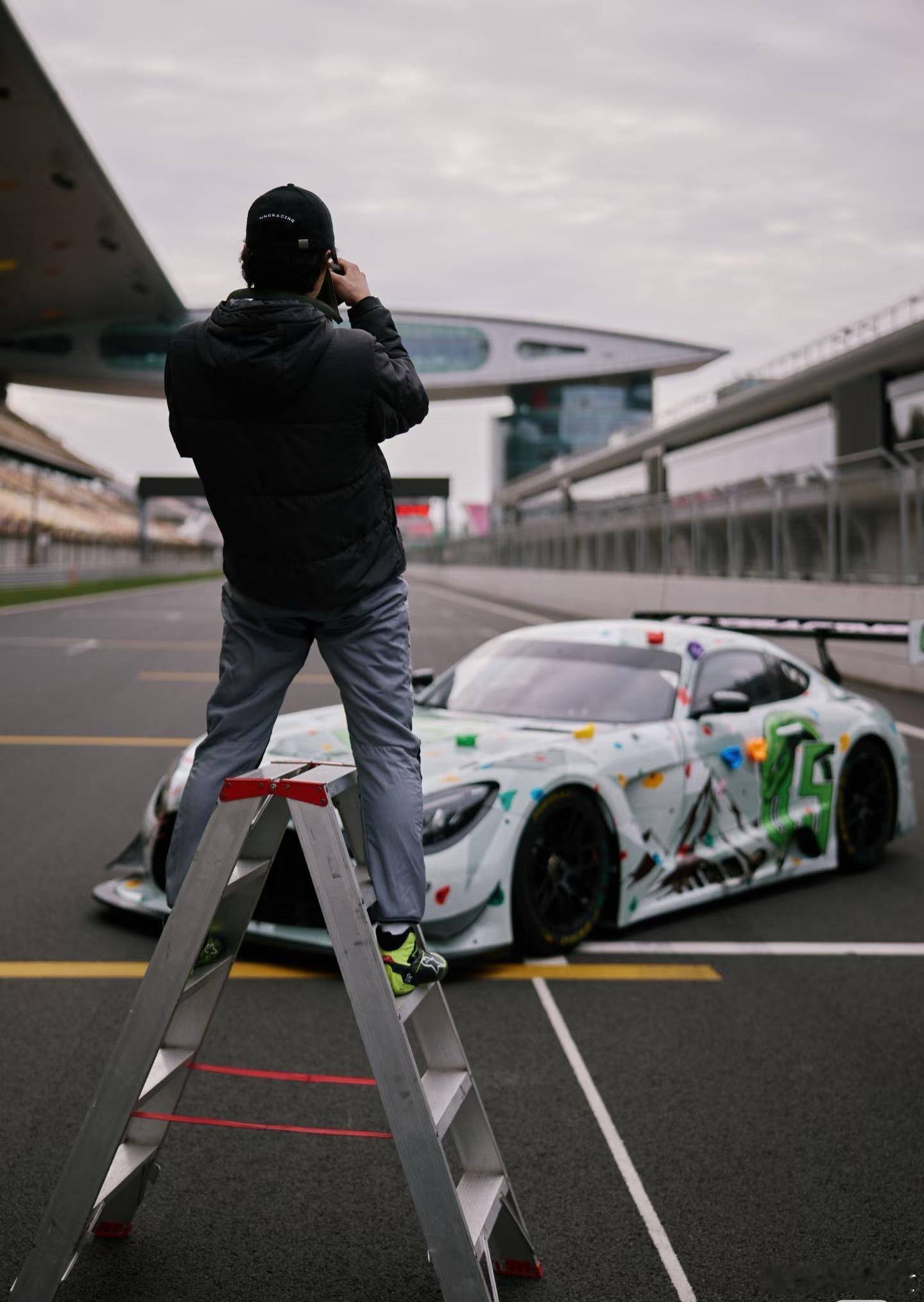 王一博 一生要出片的中国男人 救命!王一博为了给新赛车拍照也太拼了吧!踩梯子、劈