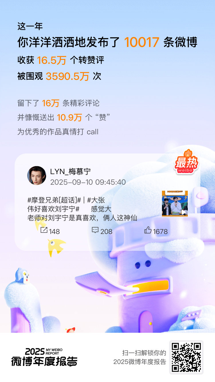 吼吼!年度报告出炉啦 速戳>>2025微博年度报告 ,解锁你的微博年度总结吧!微博年度报告 | 微博之夜 | 摩登兄弟 会一直在,一直爱