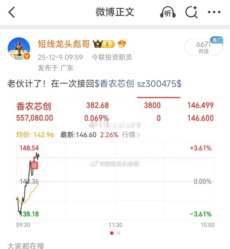 $香农芯创 sz300475$ 9号上车,期间也是叫大家做T! 相信大家10几个点的肉就拿到了吧!
