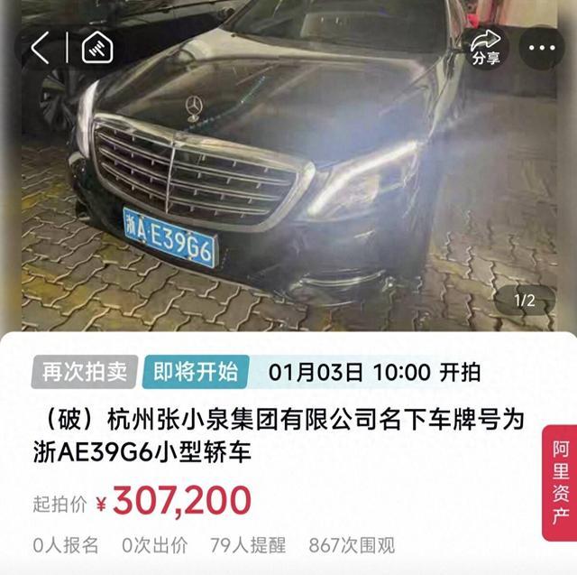 大皖新闻讯12月25日,大皖新闻记者从阿里资产平台看到,“(破)杭州张小泉集团有限公司名下车牌号为浙AE39G6的小型轿车”又上拍了,开拍时间为2026年1月3日10:00-2026年1月4日10:00。这是继前三次流拍后的第四次拍卖,起拍价也经历了三连降,由60万降至30.72万元。