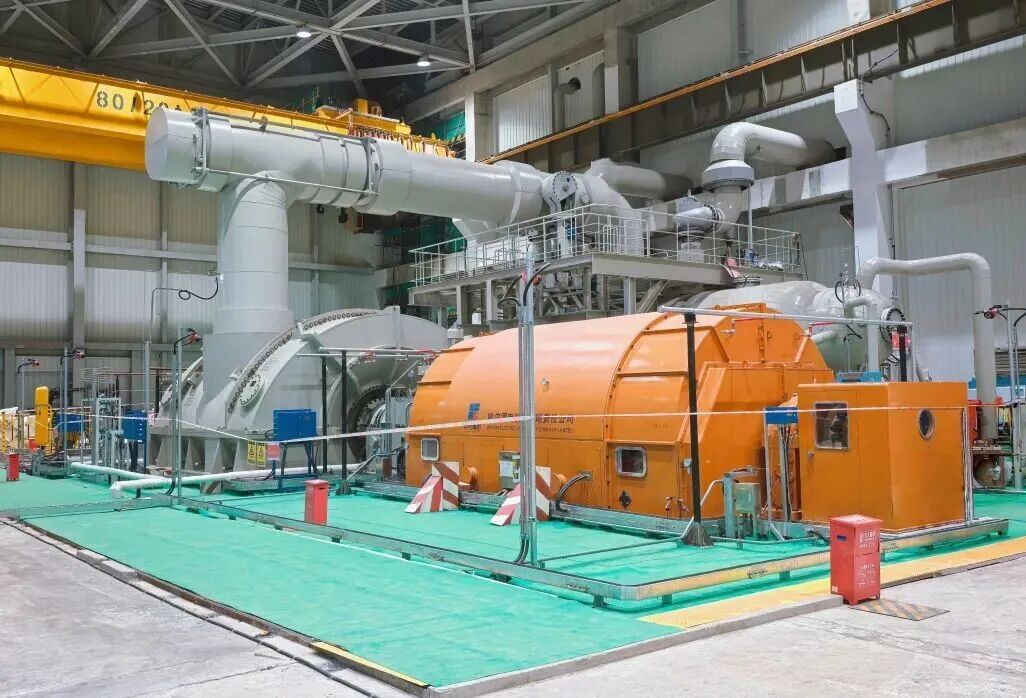 此次冲转成功的汽轮发电机组,汽轮机采用哈电集团汽轮机公司自主研制的125兆瓦等级凝汽式、单轴、单背压、过热蒸汽汽轮机组,创新应用先进的高压N+1轴承支撑等先进技术,显著提升运行效率与安全可靠性;高压模块实现整体发运、现场快速安装,凝汽器采用模块化设计,充分体现小型堆“小型化、模块化、一体化”的技术特征。汽轮发电机采用哈电集团电机公司自主研制的空冷汽轮发电机,创新应用全空冷技术,定子采用内、外机座,铁芯与机座采用弹簧板隔振结构,隔离定子铁芯自身的振动,降低机座振动幅值;定子绝缘系统采用多胶模压绝缘系统,适合于小型堆长期经济可靠运行。