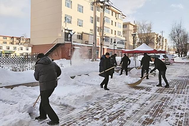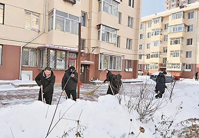经过一上午的共同努力,小区出口及居民楼周边主要道路的积雪被清扫干净,确保了居民的出行安全。